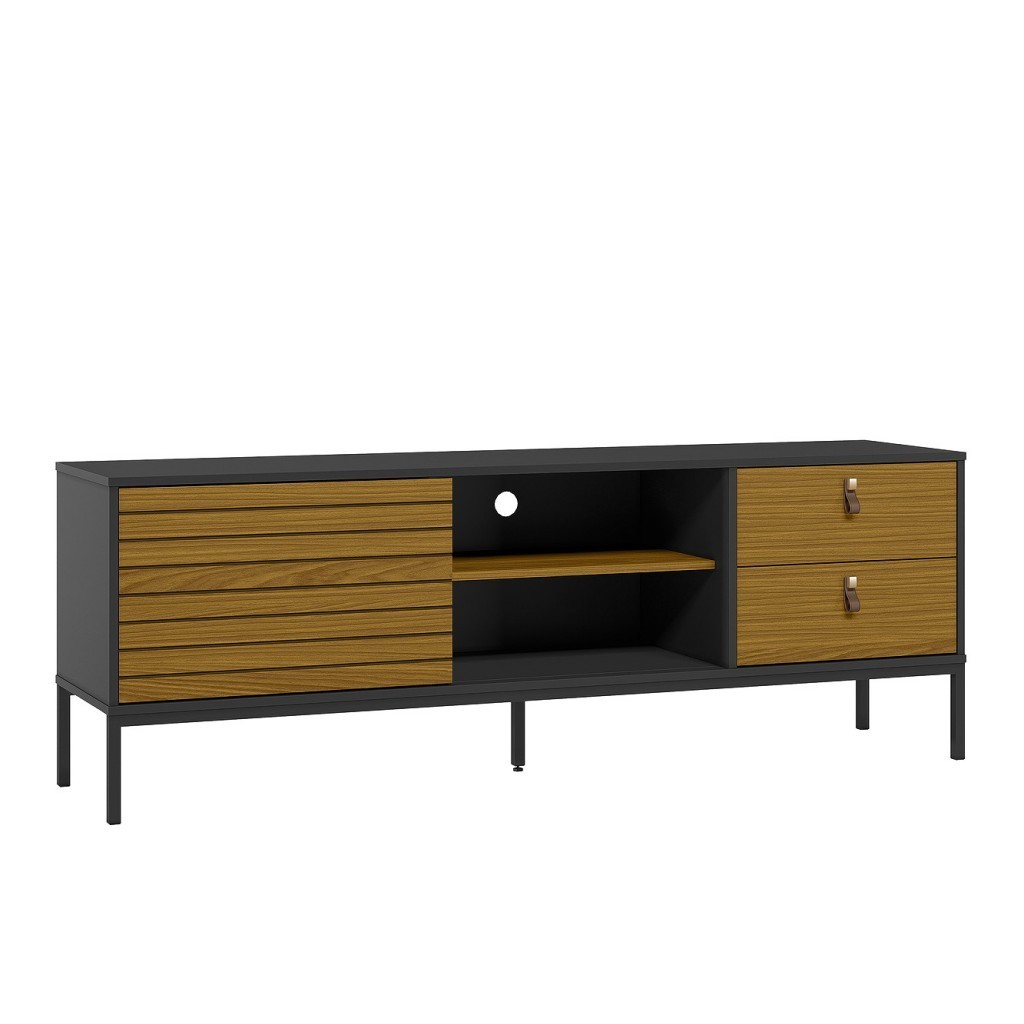 Rack Industrial Frizado Dior P/Tvs até 65 Polegadas 162cm 2 Gavetas Preto/ Cedro - Olivar Móveis
