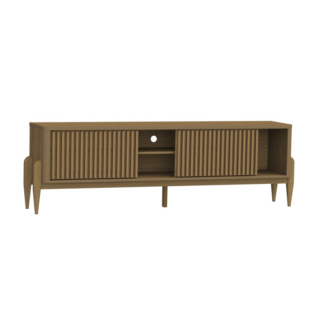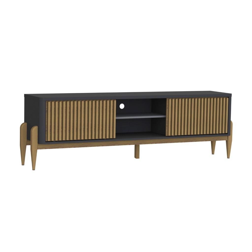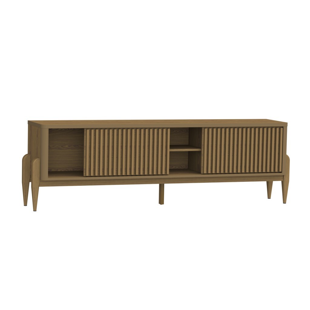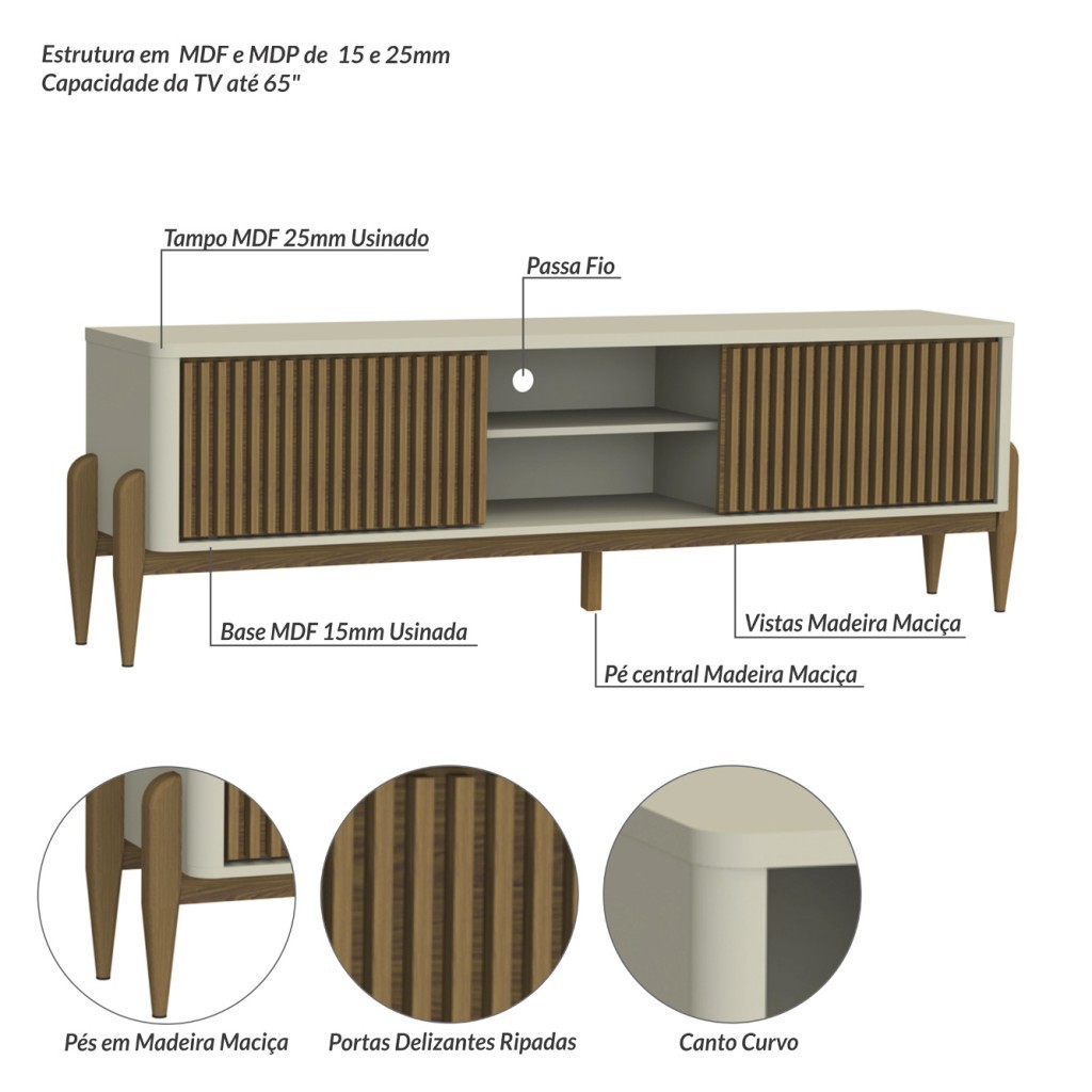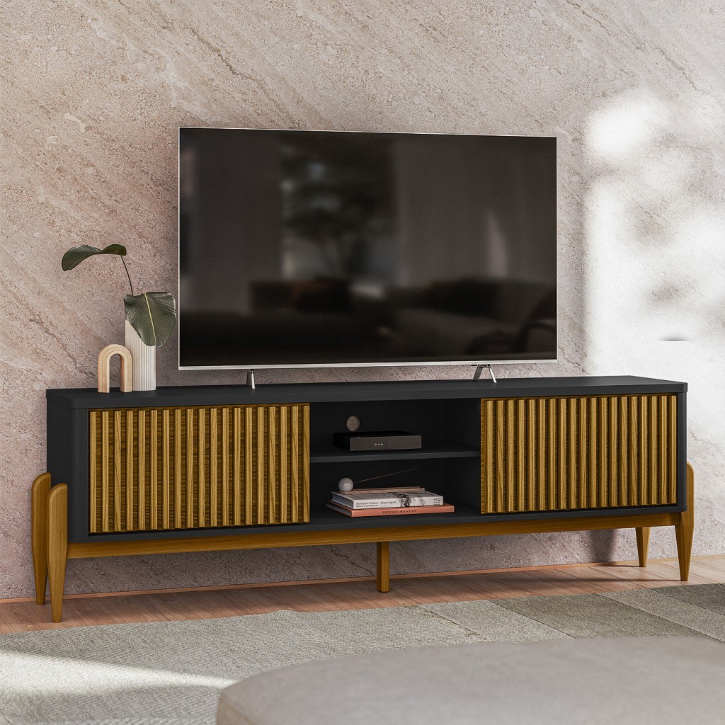 Rack Ripado Sereno p/ TV até 65” 180cm com 2 Portas de Correr e Pés de Madeira Maciça - Olivar