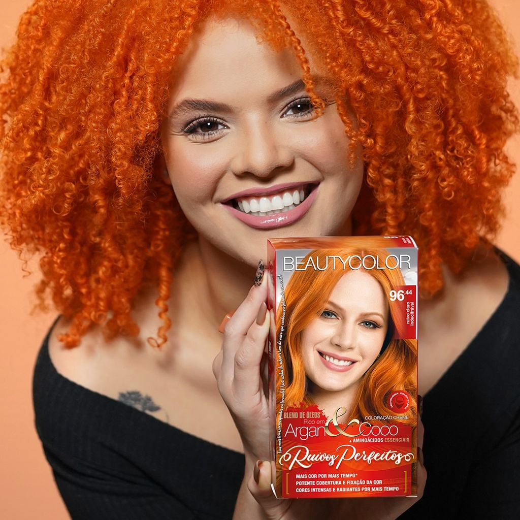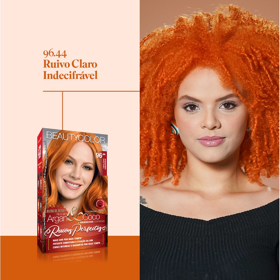 Kit Coloração Permanente Tinta De Cabelo 96.44 Ruivo Claro Indecifrável 45g Beauty Color