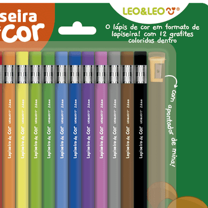 LAPISEIRA DE COR/GRAFITE COLORIDO 2.6 - BLISTER C/ 12 CORES + APONTADOR LEO&LEO.