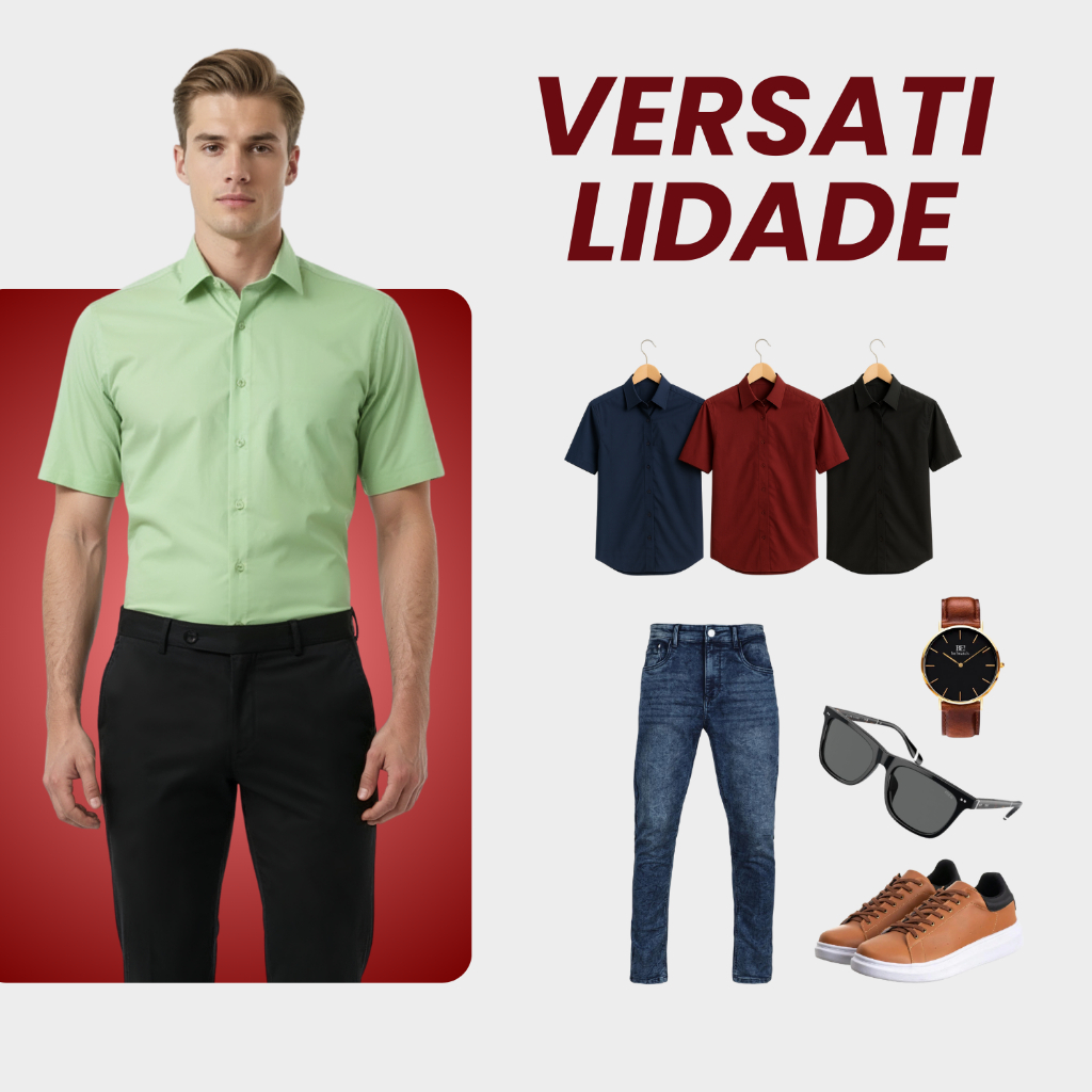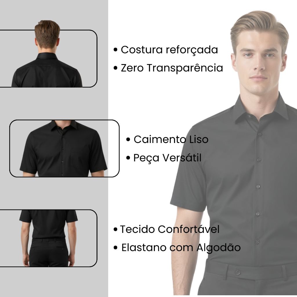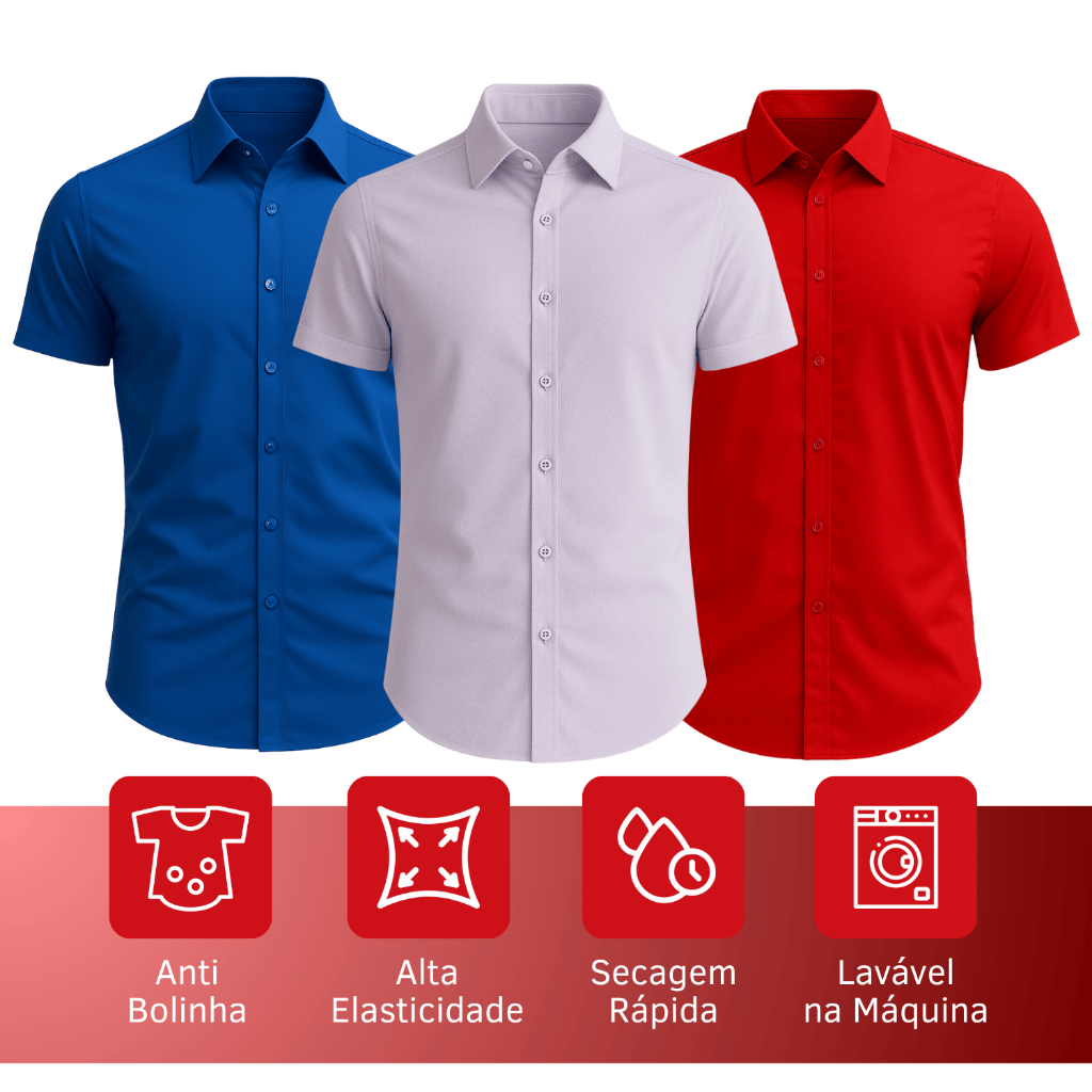 Kit 3 Camisa Social Masculino Manga Curta Slim Fit Blusa Masculina Social Com Algodão Camiseta Social Sem Bolso