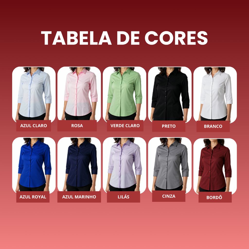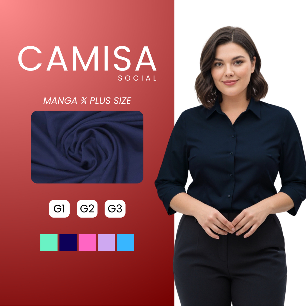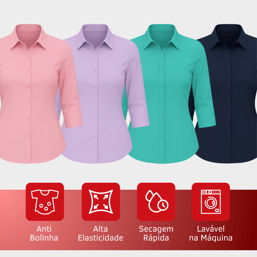 Kit 3 Camisa Social Feminina Manga 3/4 Plus Size Blusa Social Tamanho Especial Tecido Não Amassa Camiseta Com Elastano