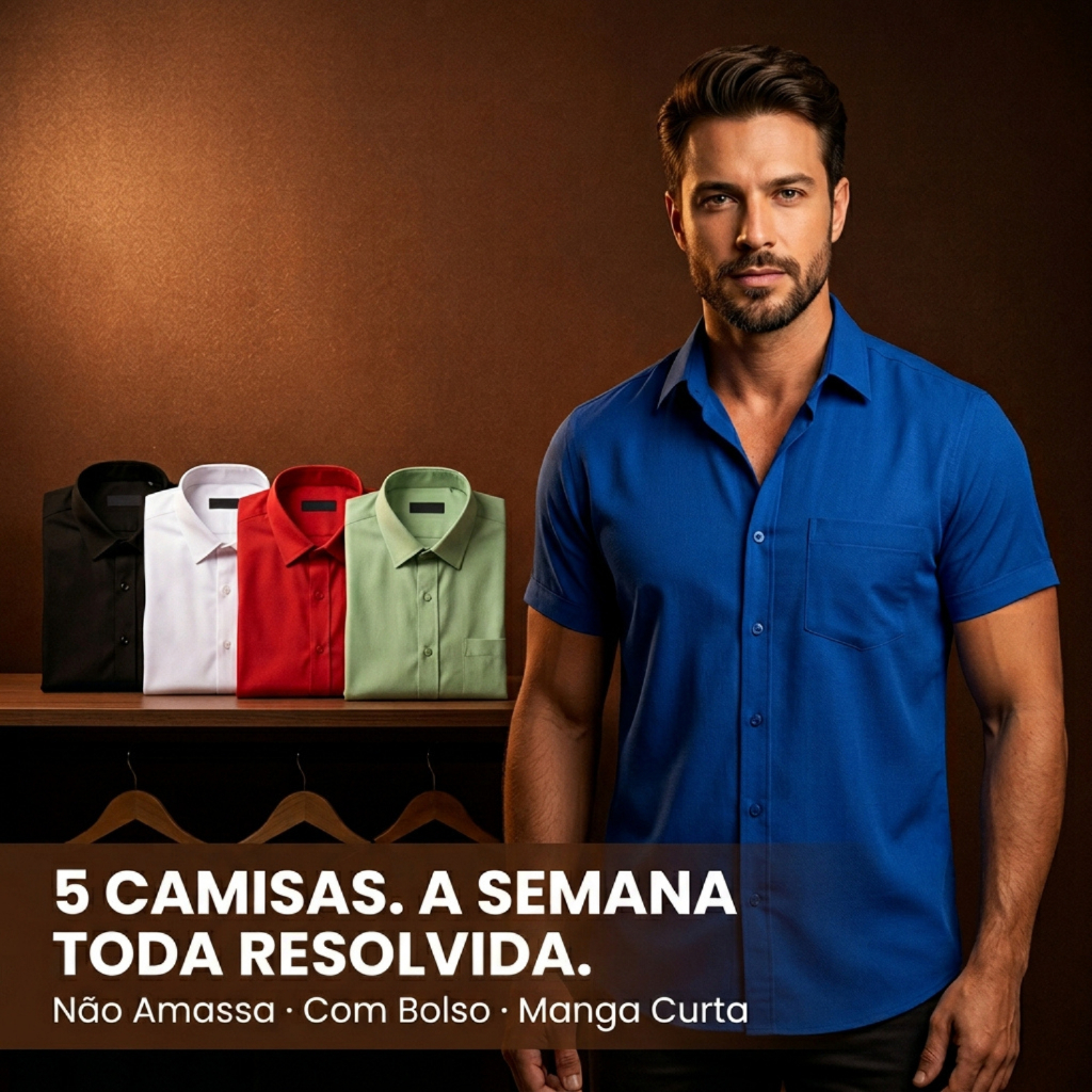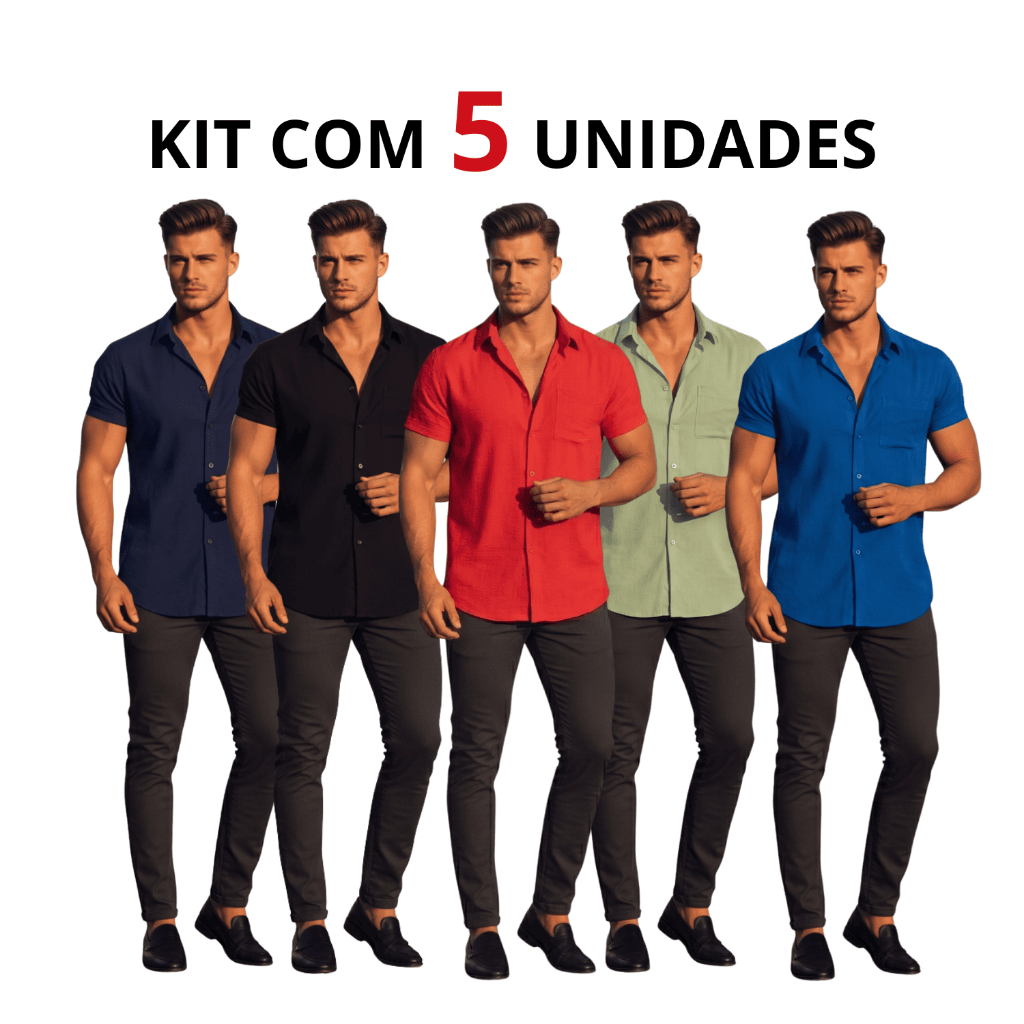Kit 5 Camisa Social Masculina Manga Curta Promoção Blusa Masculina Social Cores Lisas Camiseta Social Masculina