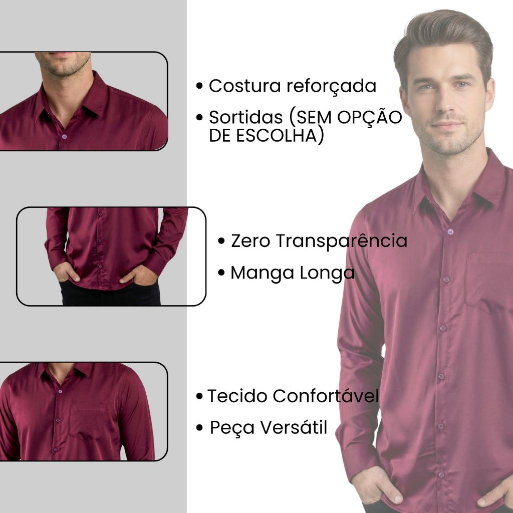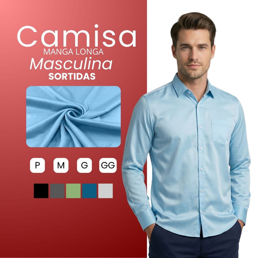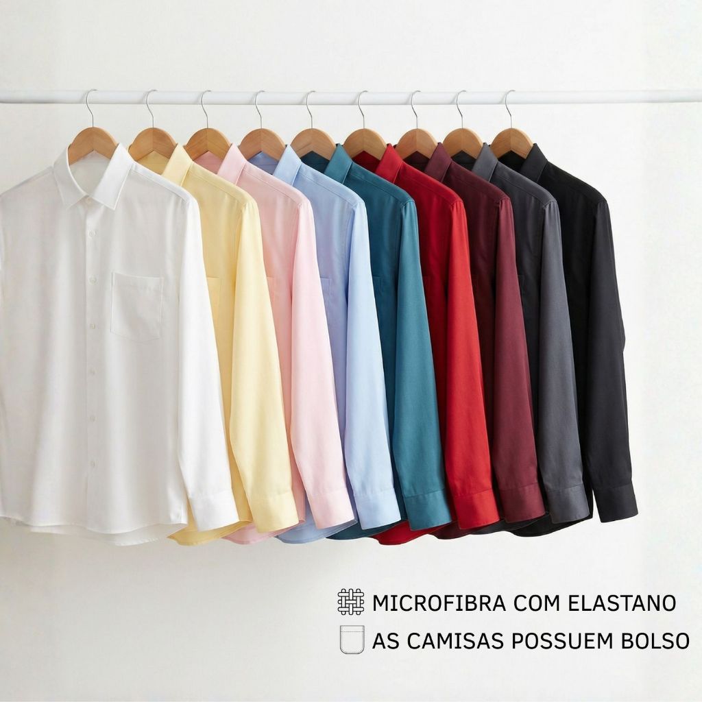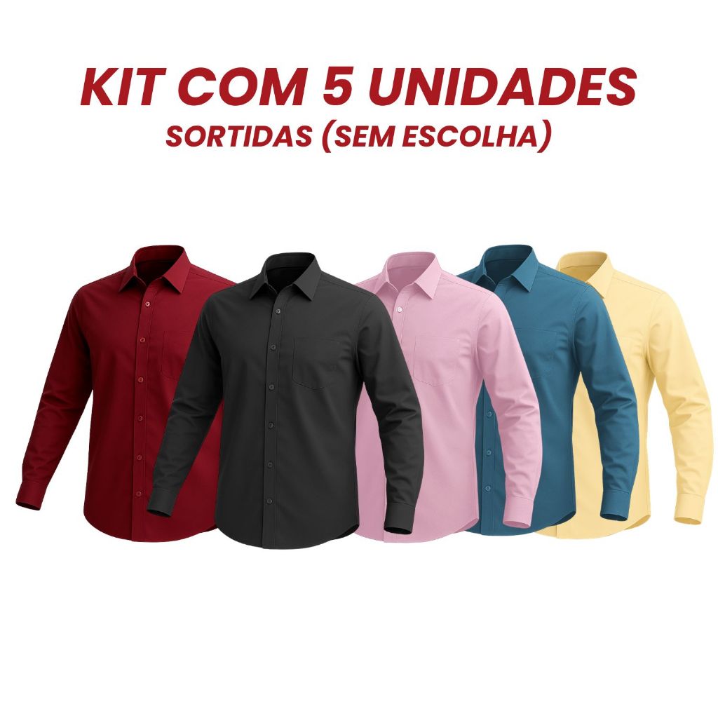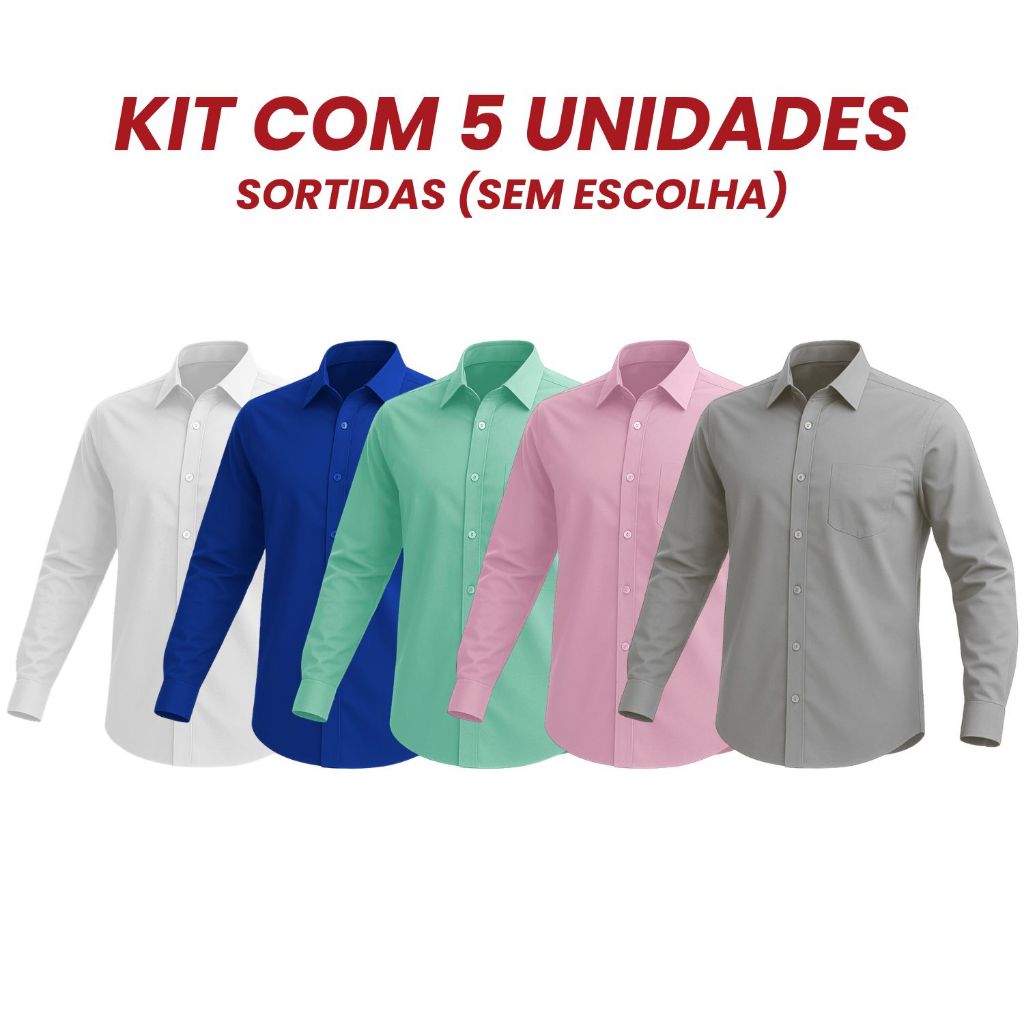 Kit 5 Camisa Social Masculina Manga Longa Sortidas Promoção Blusa Social Cores Sortidas Camiseta Social Aleatórias
