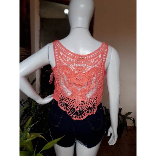 Cropped básico viscose costa de renda