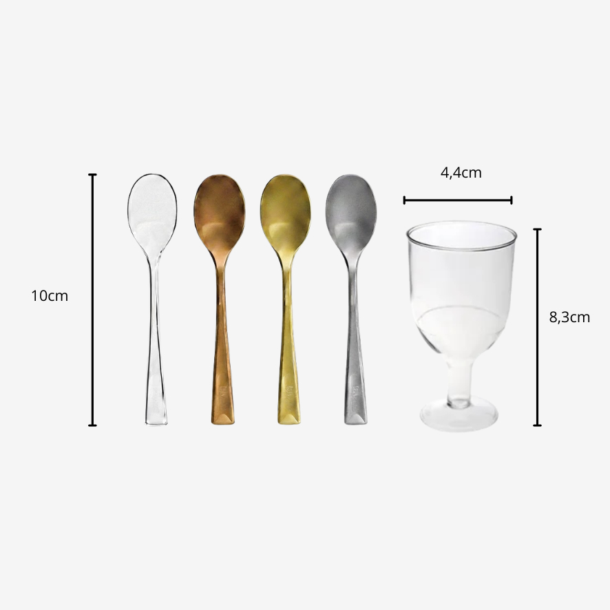 Kit Taça Acrílica 50ml PIT 055 + Colher Americana | Plastilânia | Doces Gourmet | 20/40/60/80/100 un