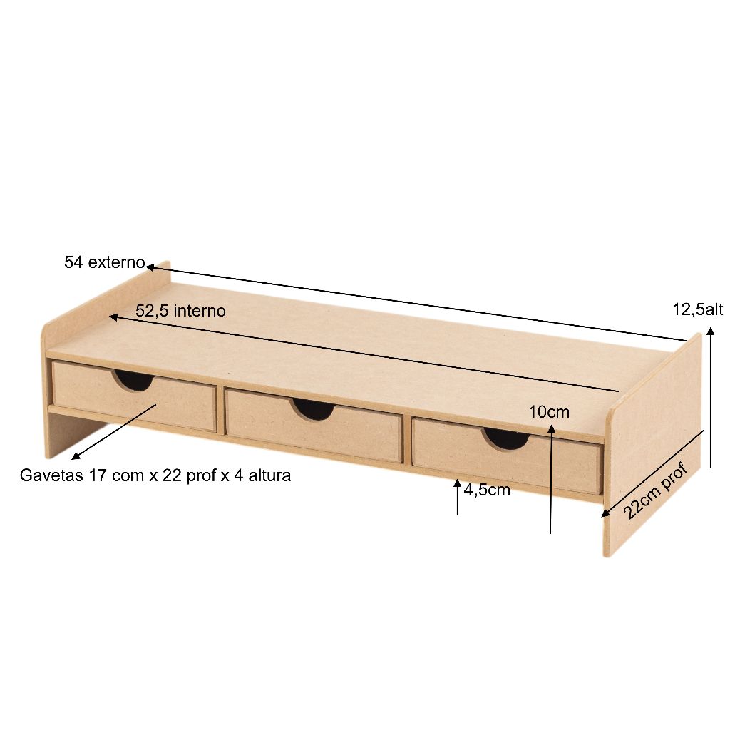 Aparador De Mesa Organização Setup 3 Gavetas Lisas Mdf Cru