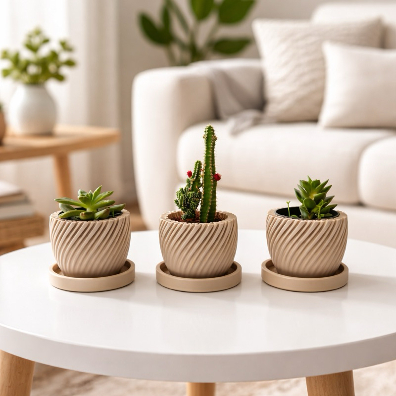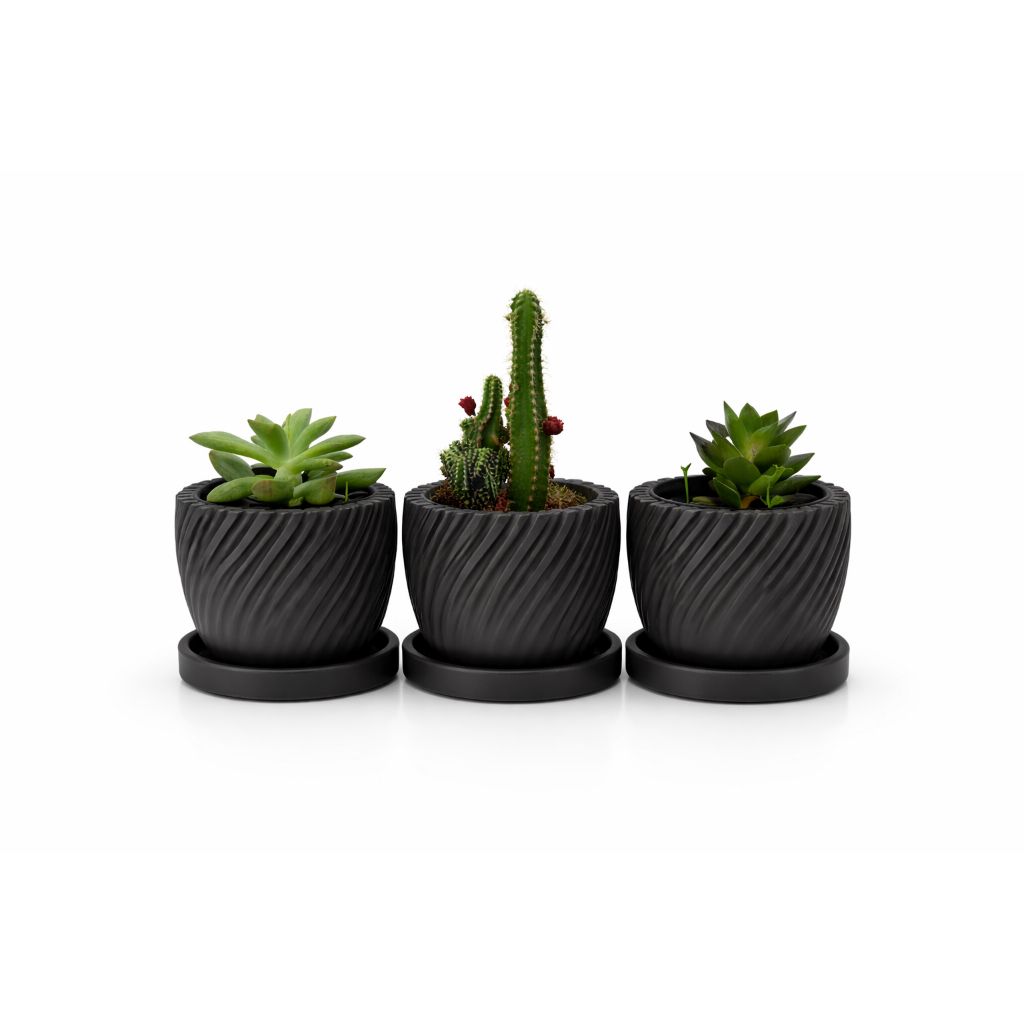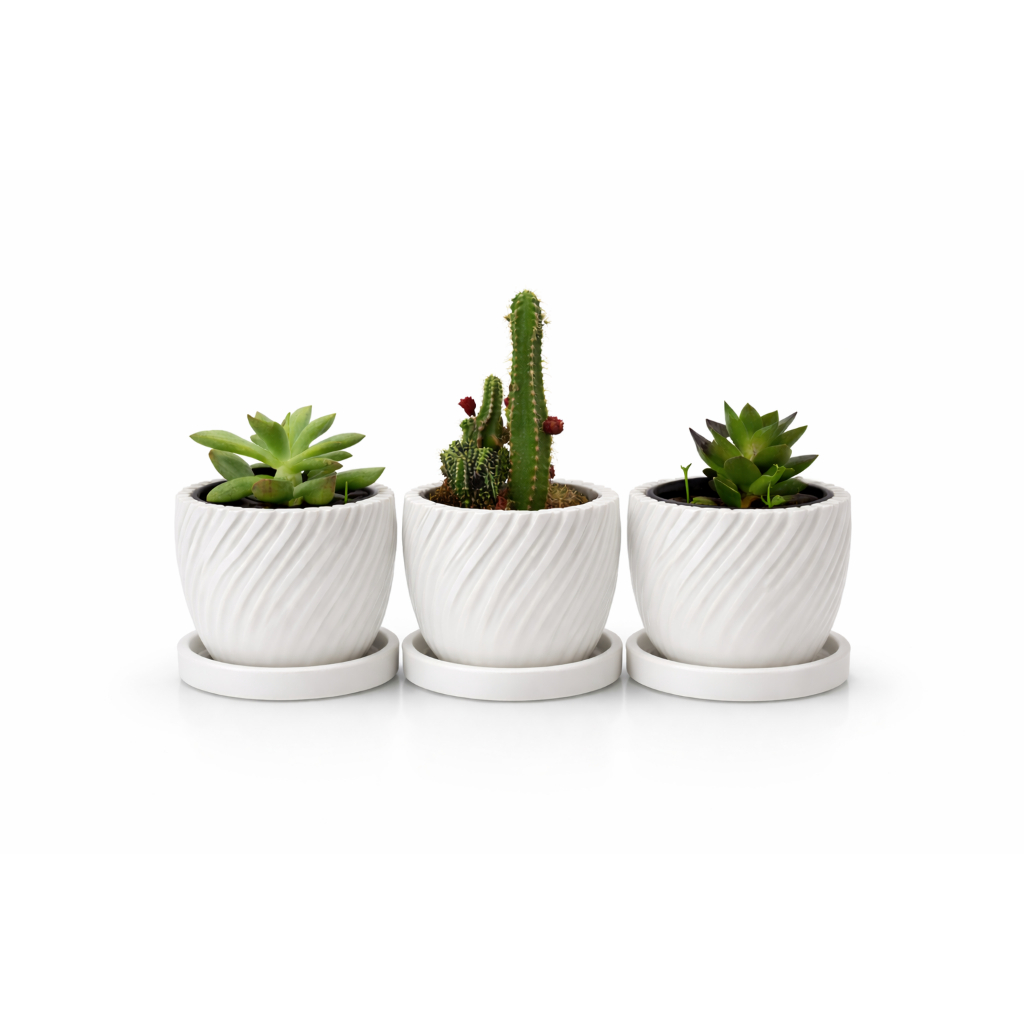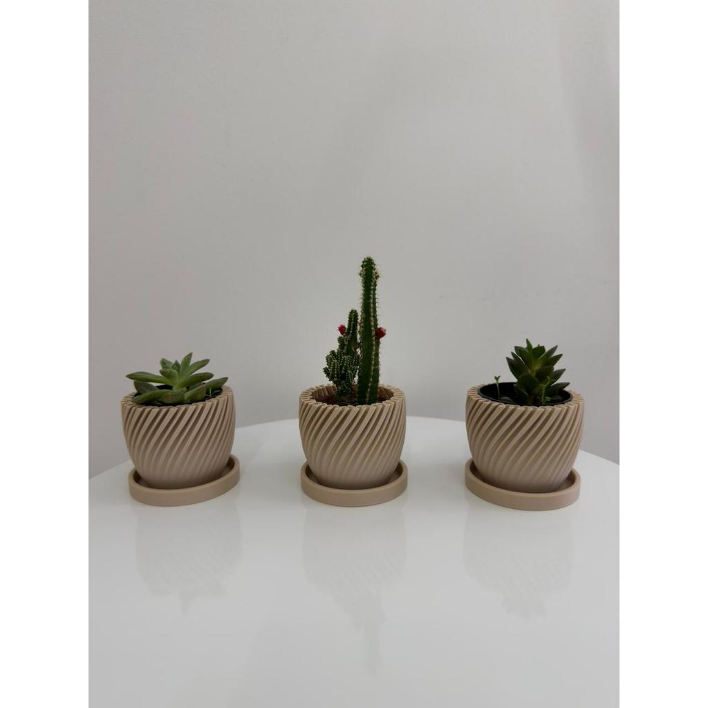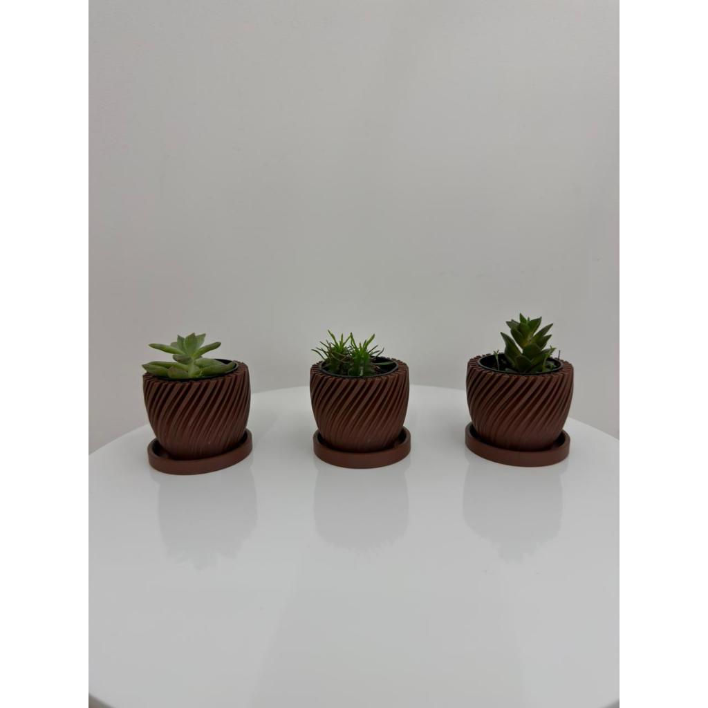 Kit 3 Vasinhos premium para Suculentas com prato,Lembrancinha ,Decoração para Casa, Sala, Estante, Enfeite, cachepot