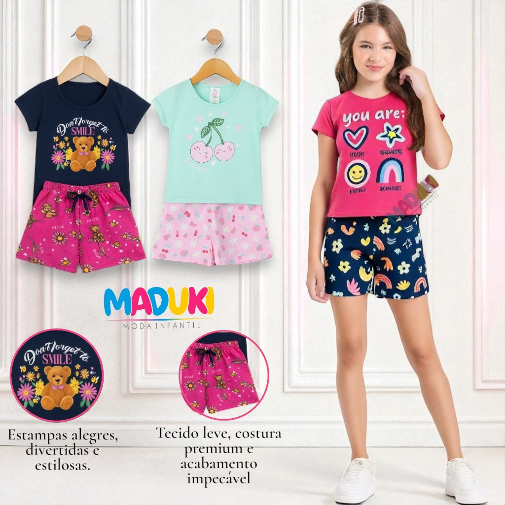 Kit 6 Peças Premium Infantil Juvenil Menina Verão Conjunto Infantil Feminino 1 a 16