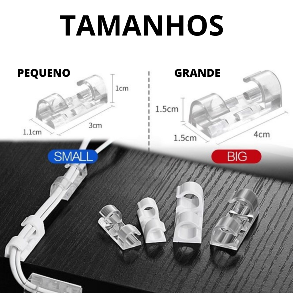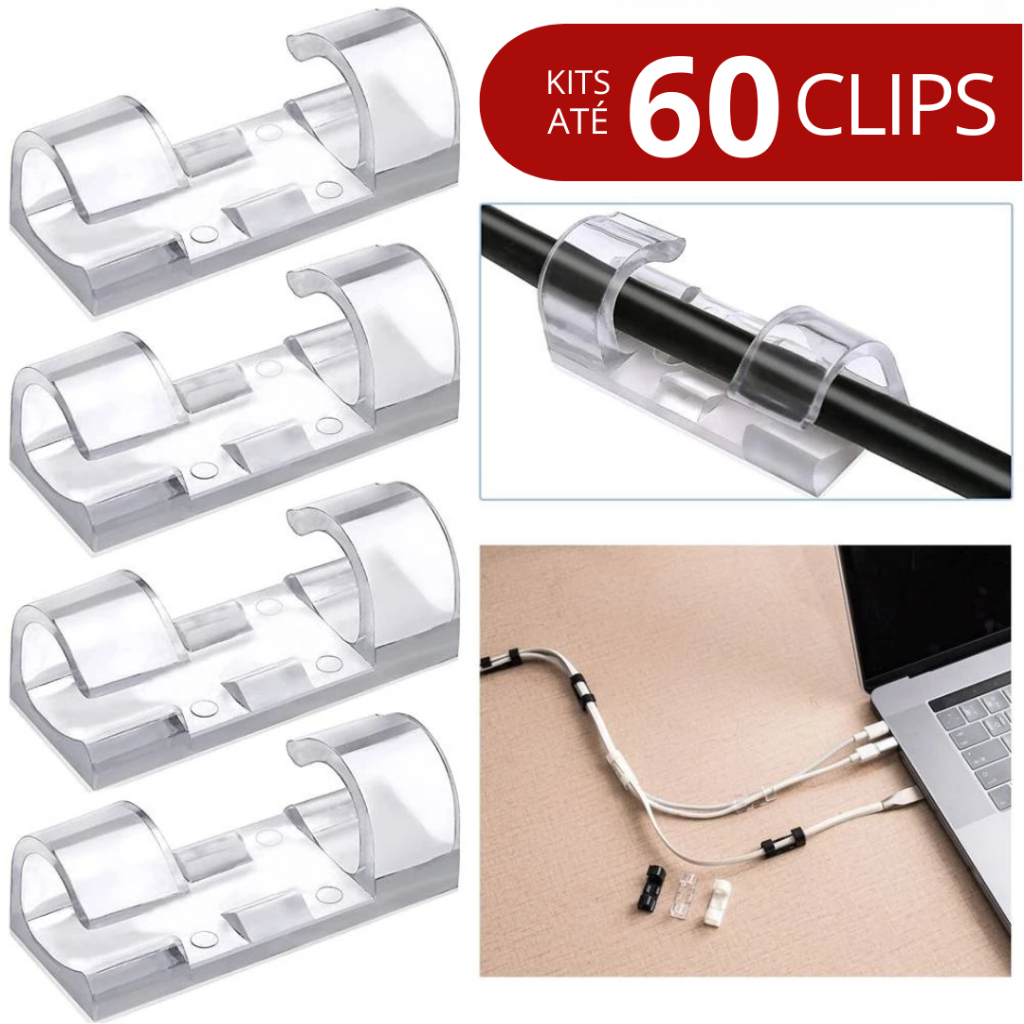 Clip Fixador Organizador de Fios e Cabos 20 Peças Autoadesivo