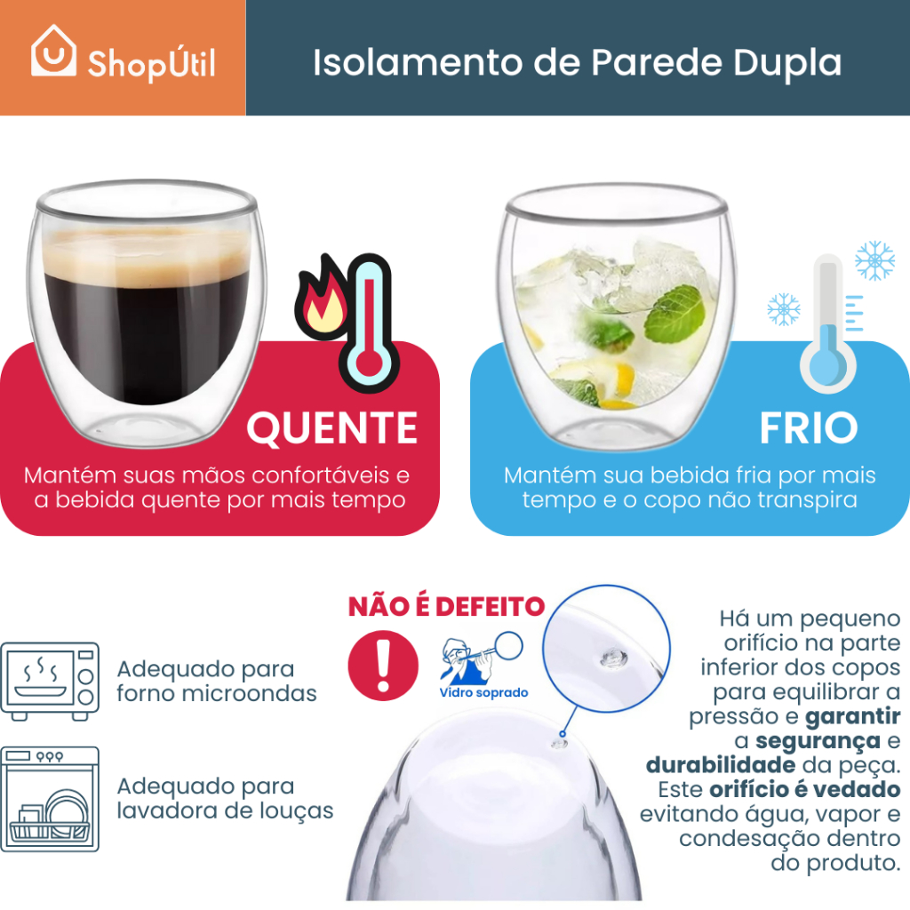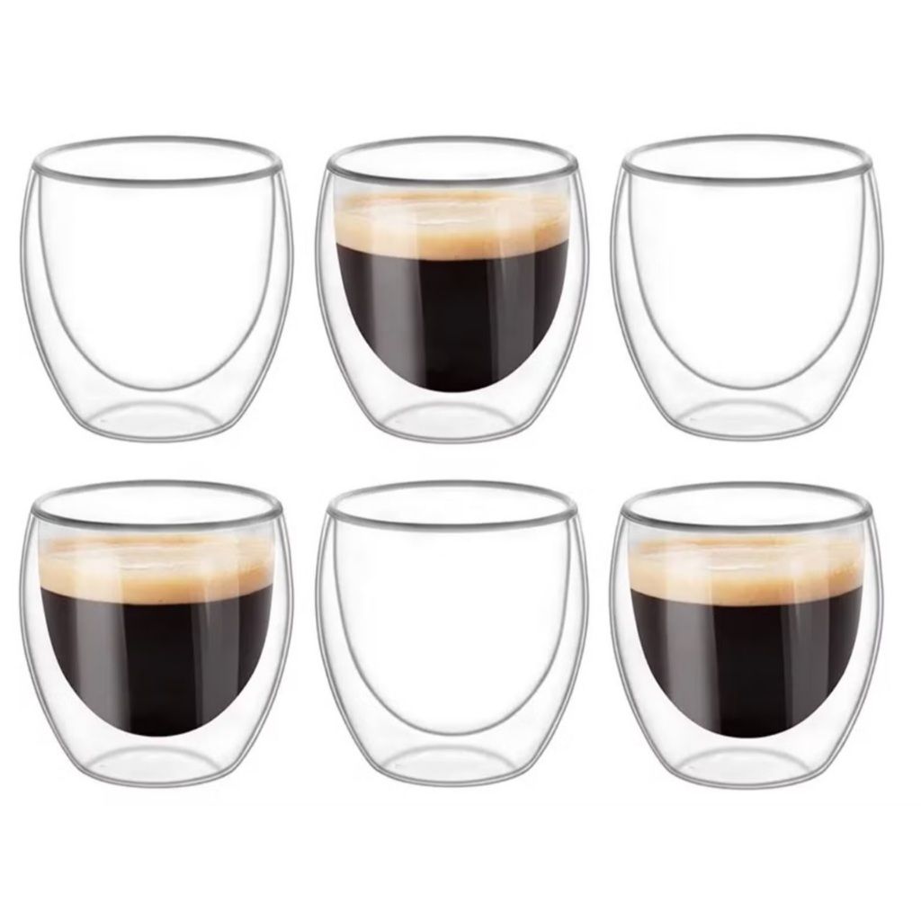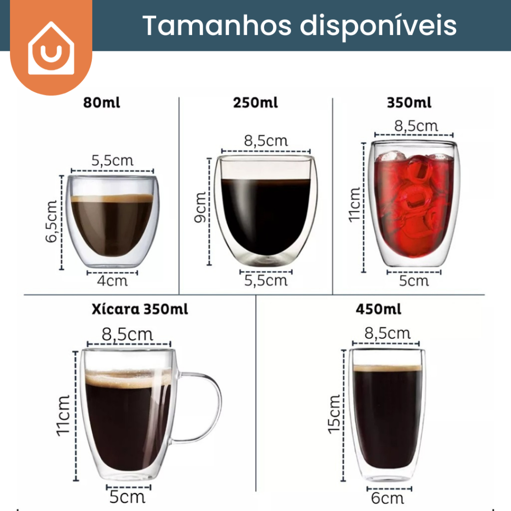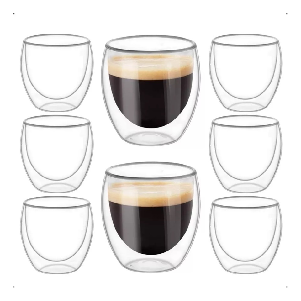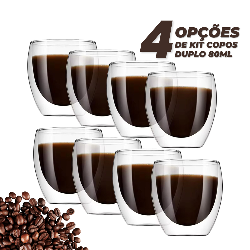 Kit Copos Parede Dupla Vidro Duplo Borossilicato 80ml