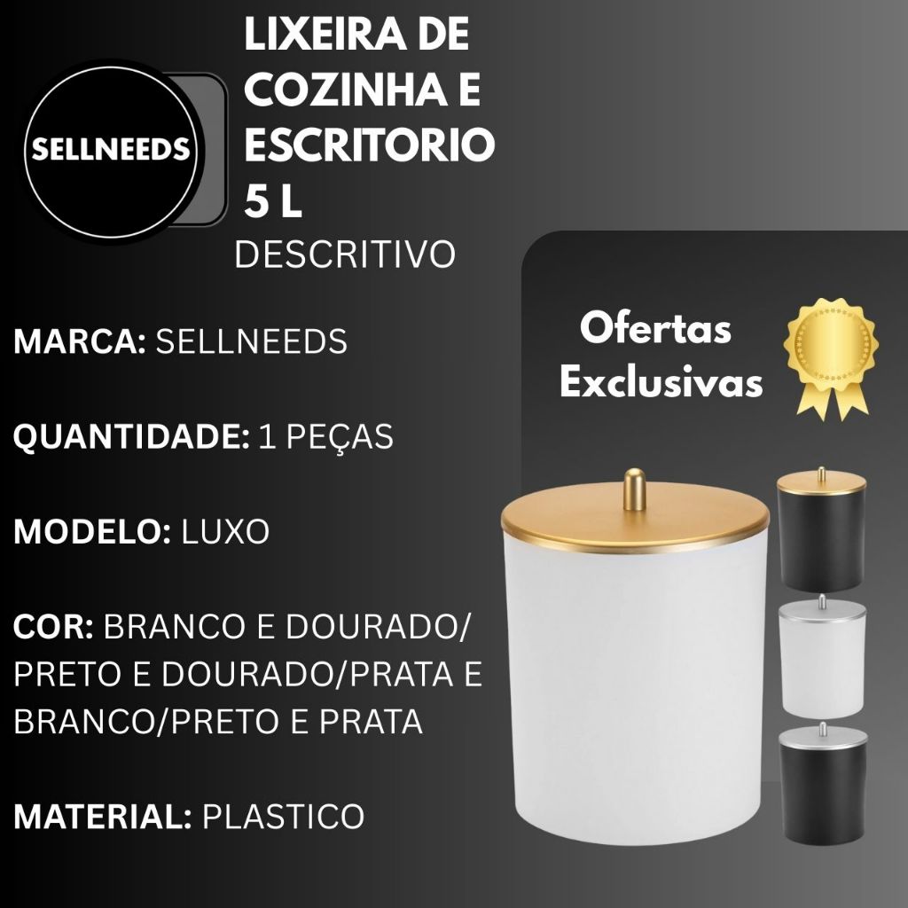 Lixeira de Cozinha Escritório Banheiro 5L com Tampa