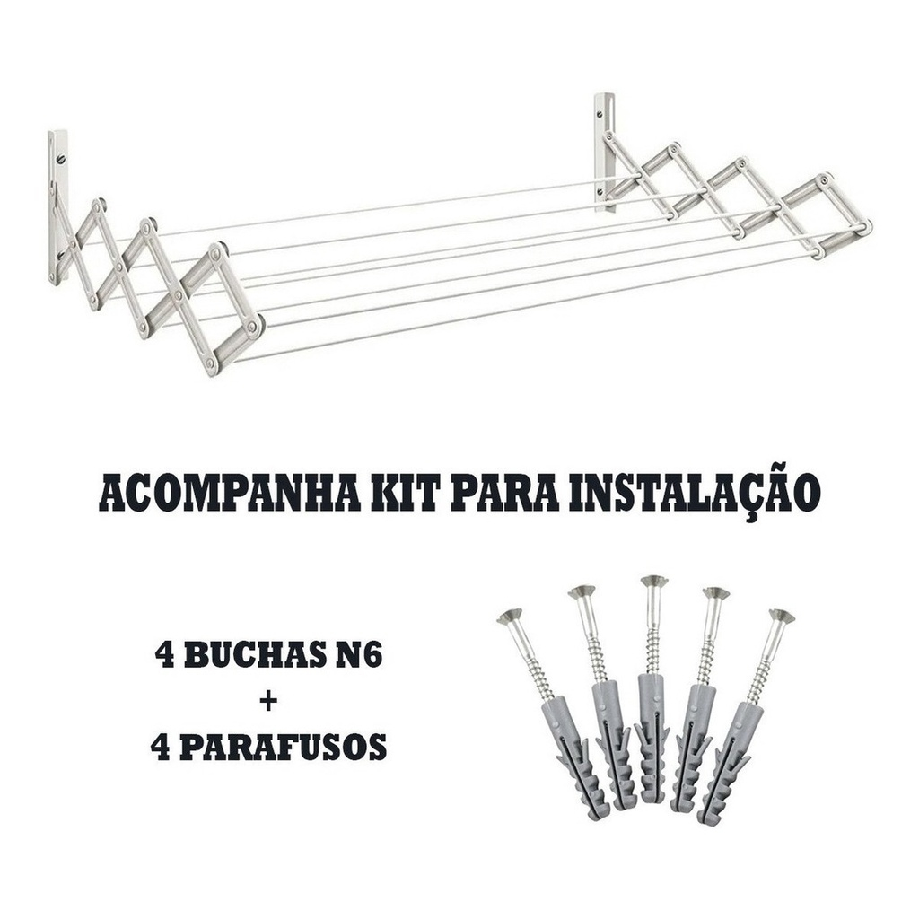 Kit 2 Varal Sanfonado Retratil Prático Recolhivél 80 Cm