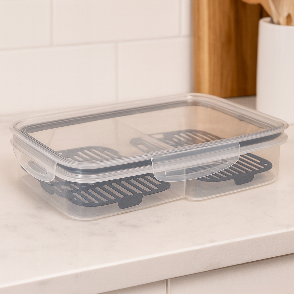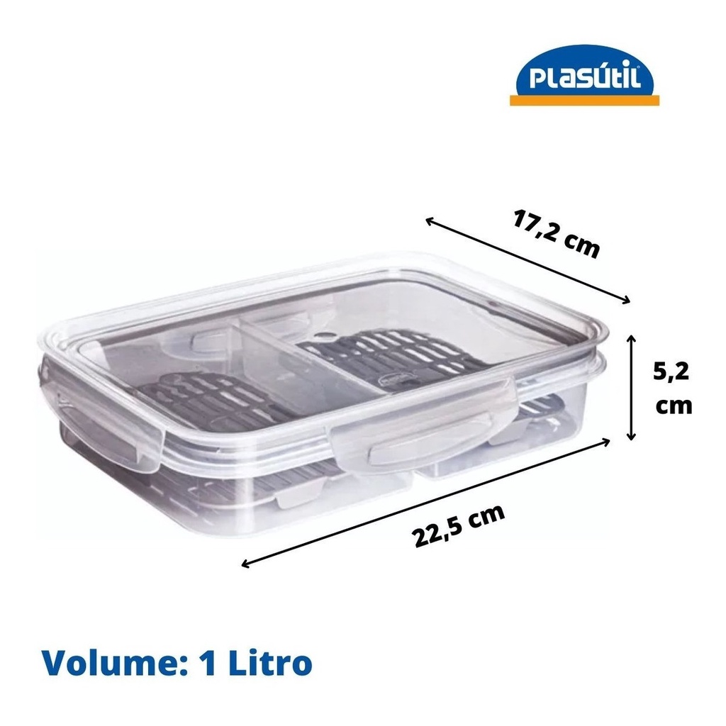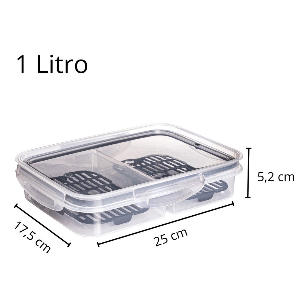 Pote Porta Frios C/ Escorredor Tampa C/ Travas 2 Divisórias