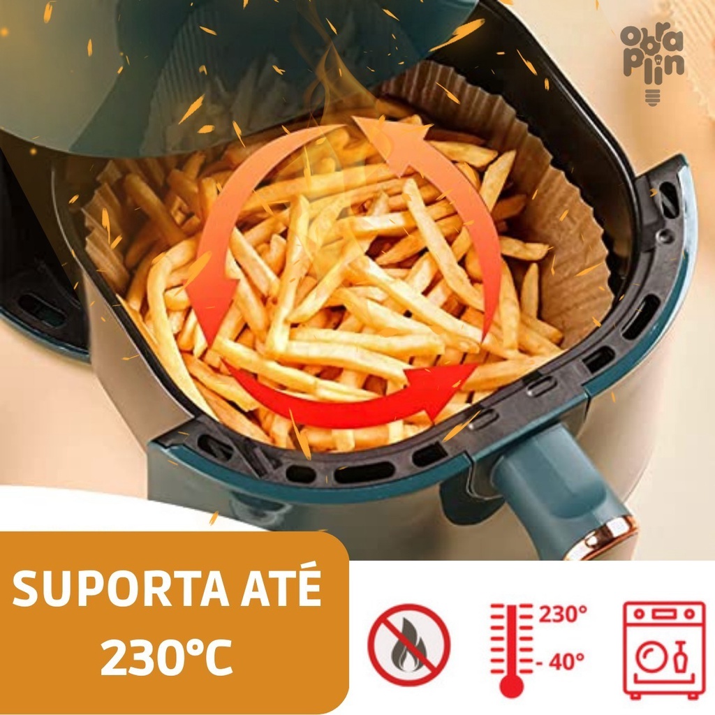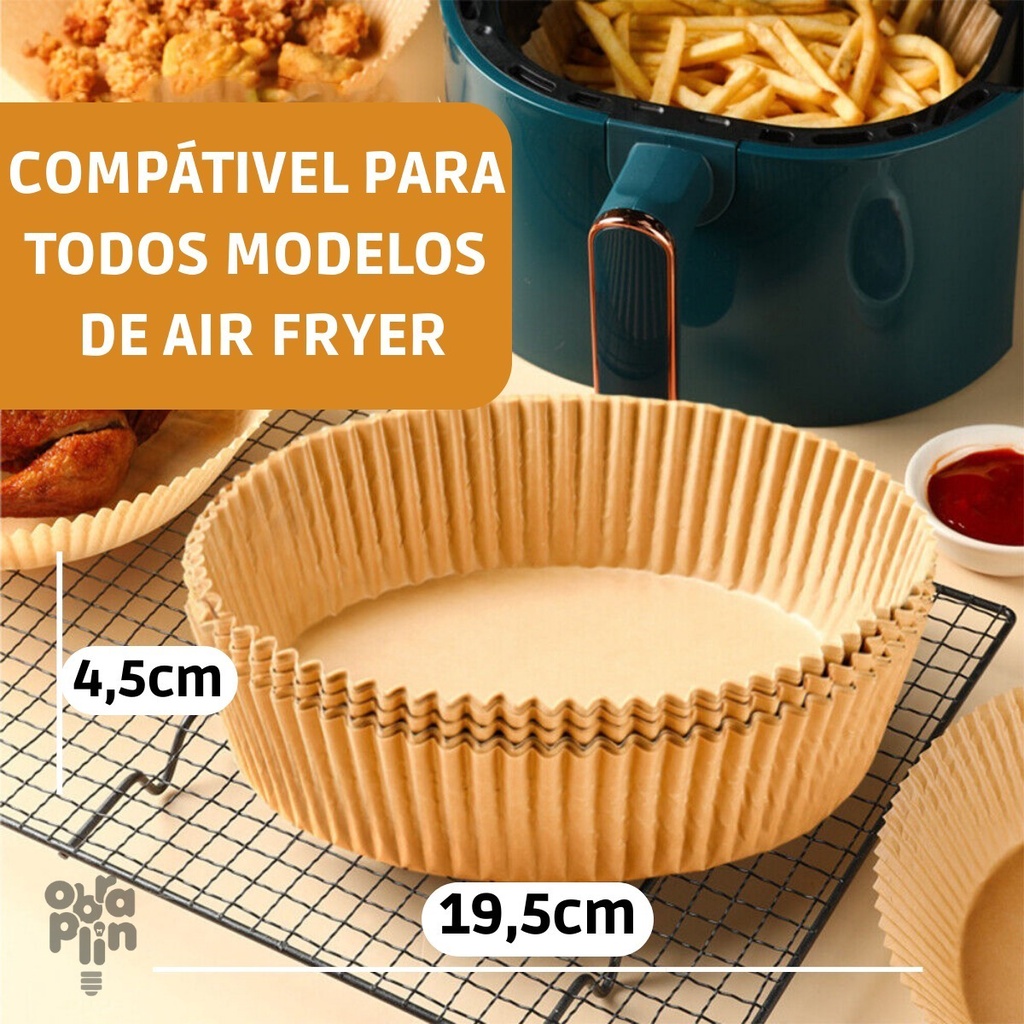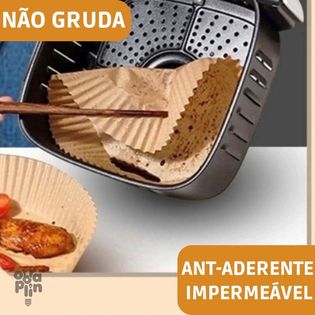 Kit 50 Forro Papel Airfryer Descartável Forma Antiaderente