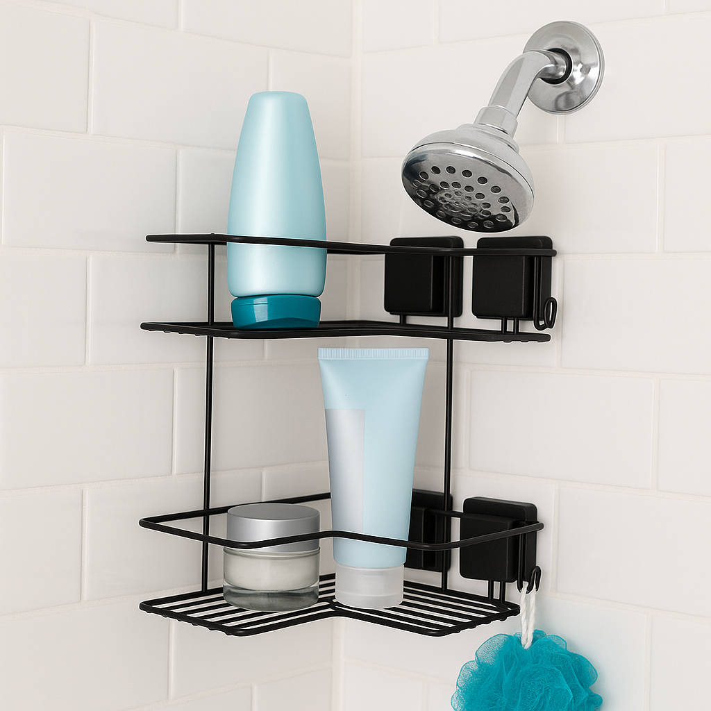 Suporte Porta Shampoo Duplo Parede Ventosa Sem Furo Para Box Preto