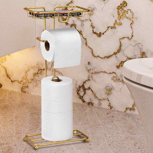 Porta Papel Higiênico Dispenser Porta Celular Banheiro Dourado