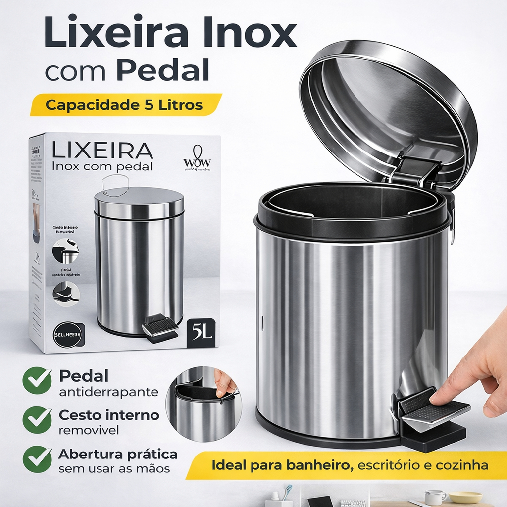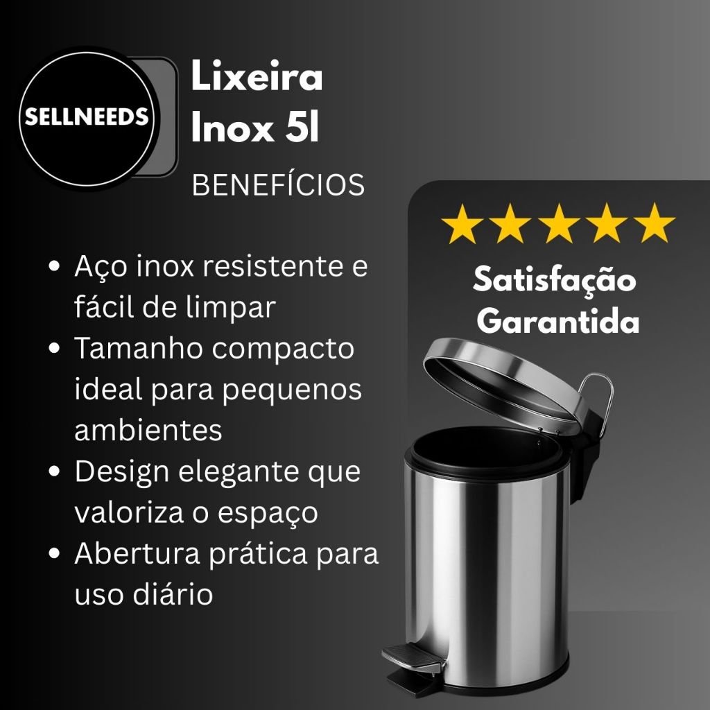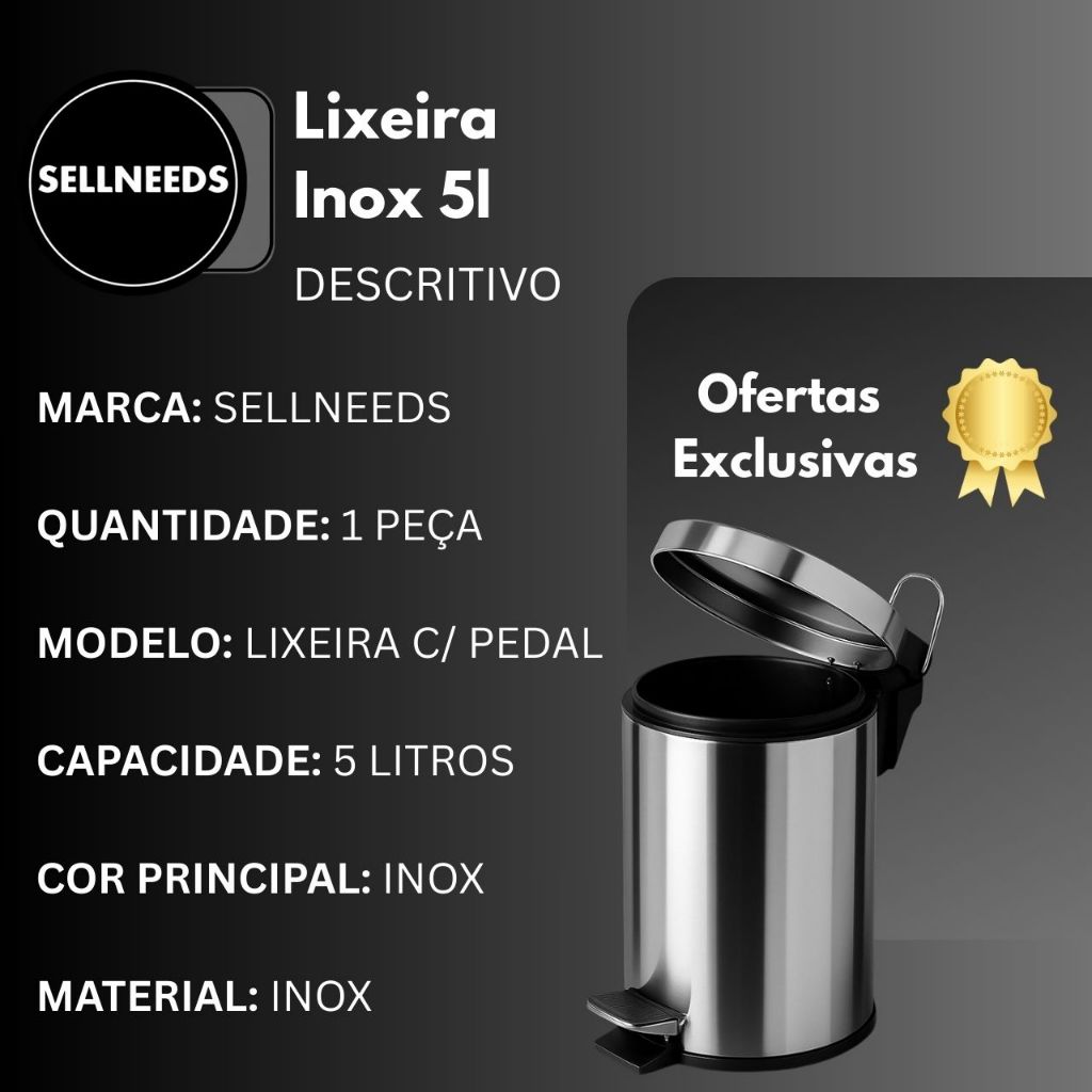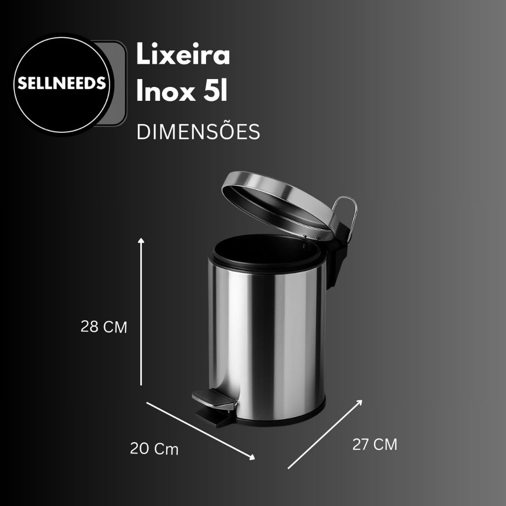 Lixeira Inox 5 Litros Cesto Com Pedal E Balde Removivél