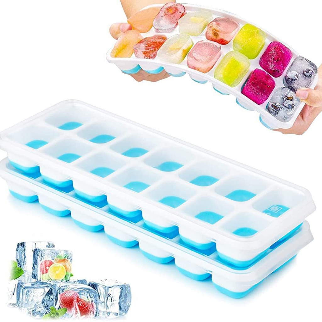 Kit 6 Forma De Gelo Fundo Silicone 14 Cubos Tampa Rígida