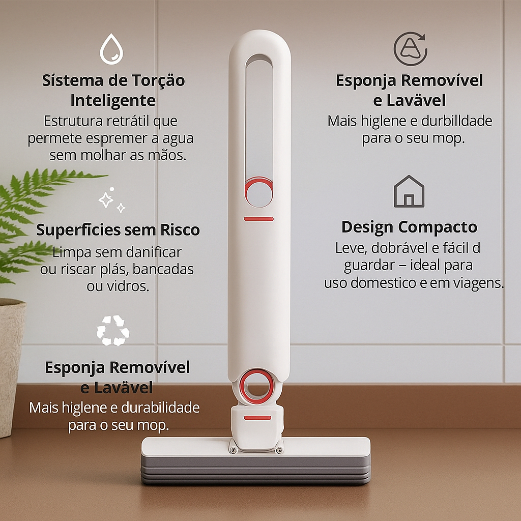 Rodo Mini Mop Magico Limpa E Seca Rodinho De Pia Cozinha Retratil Portatil