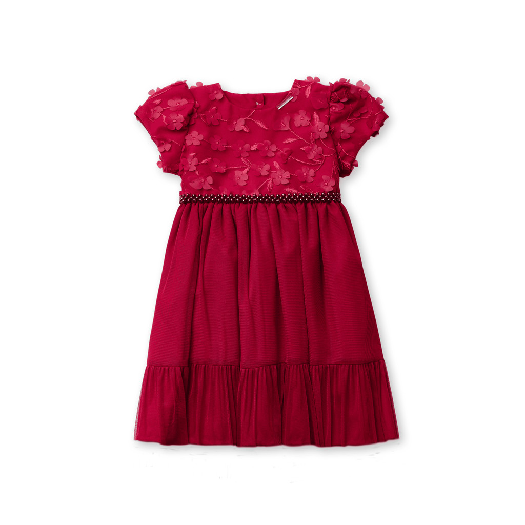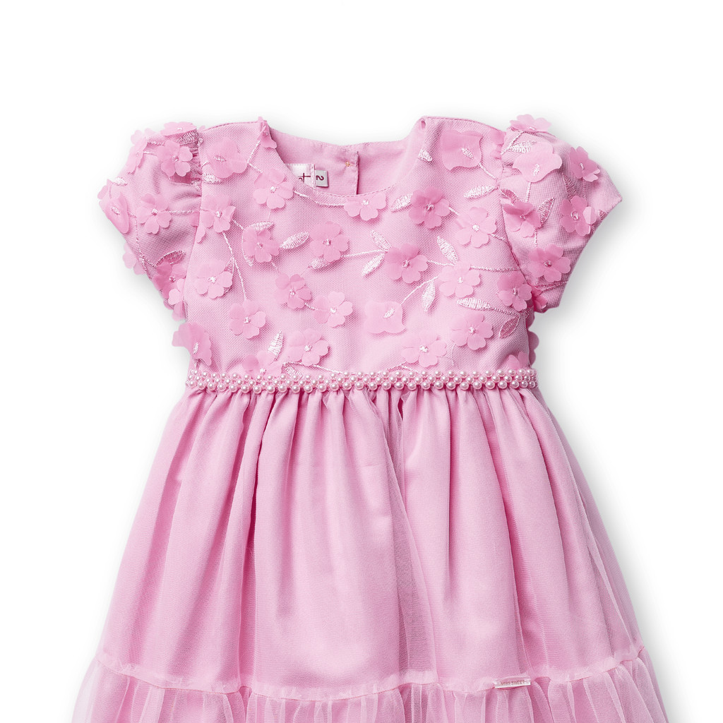 Vestido Fleur Menina Festa Luxo Tule Flores 3D Pérolas