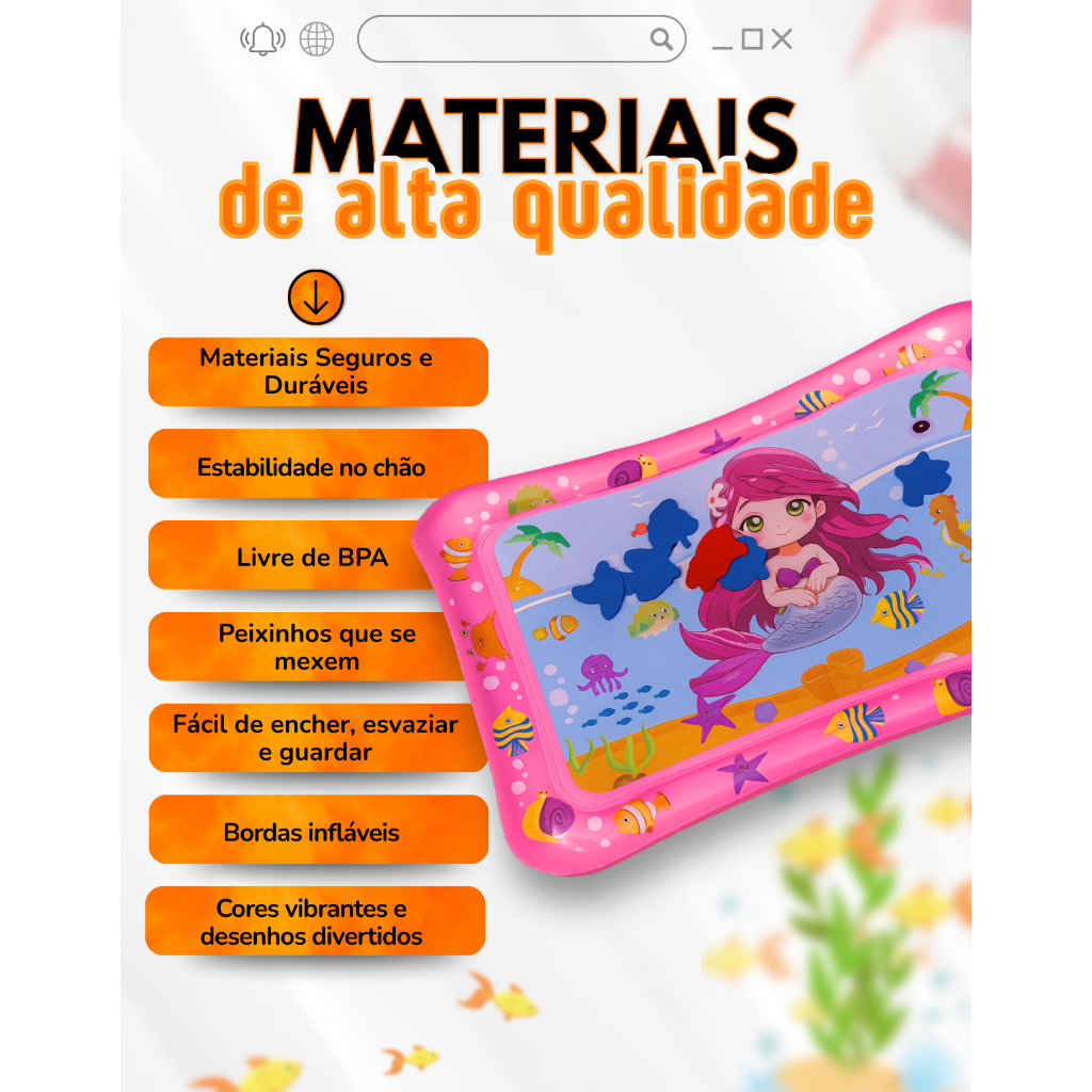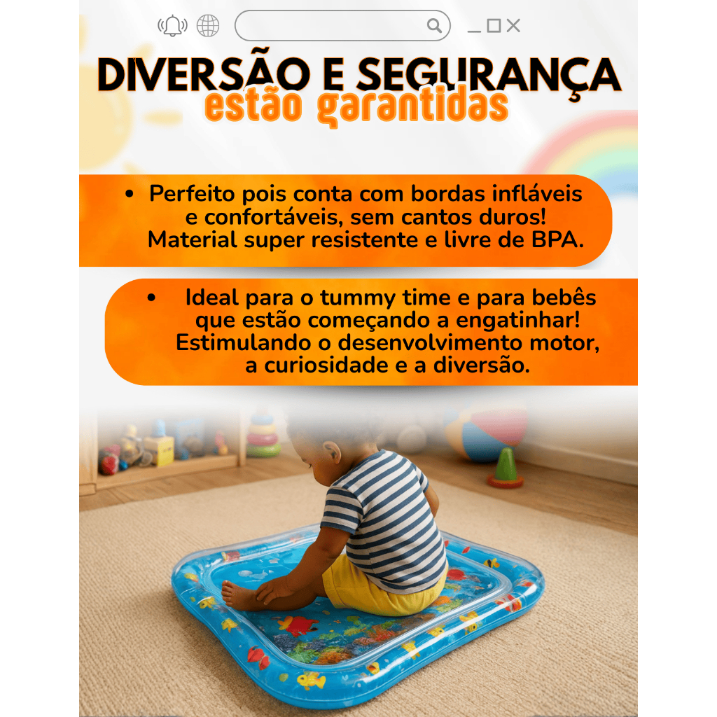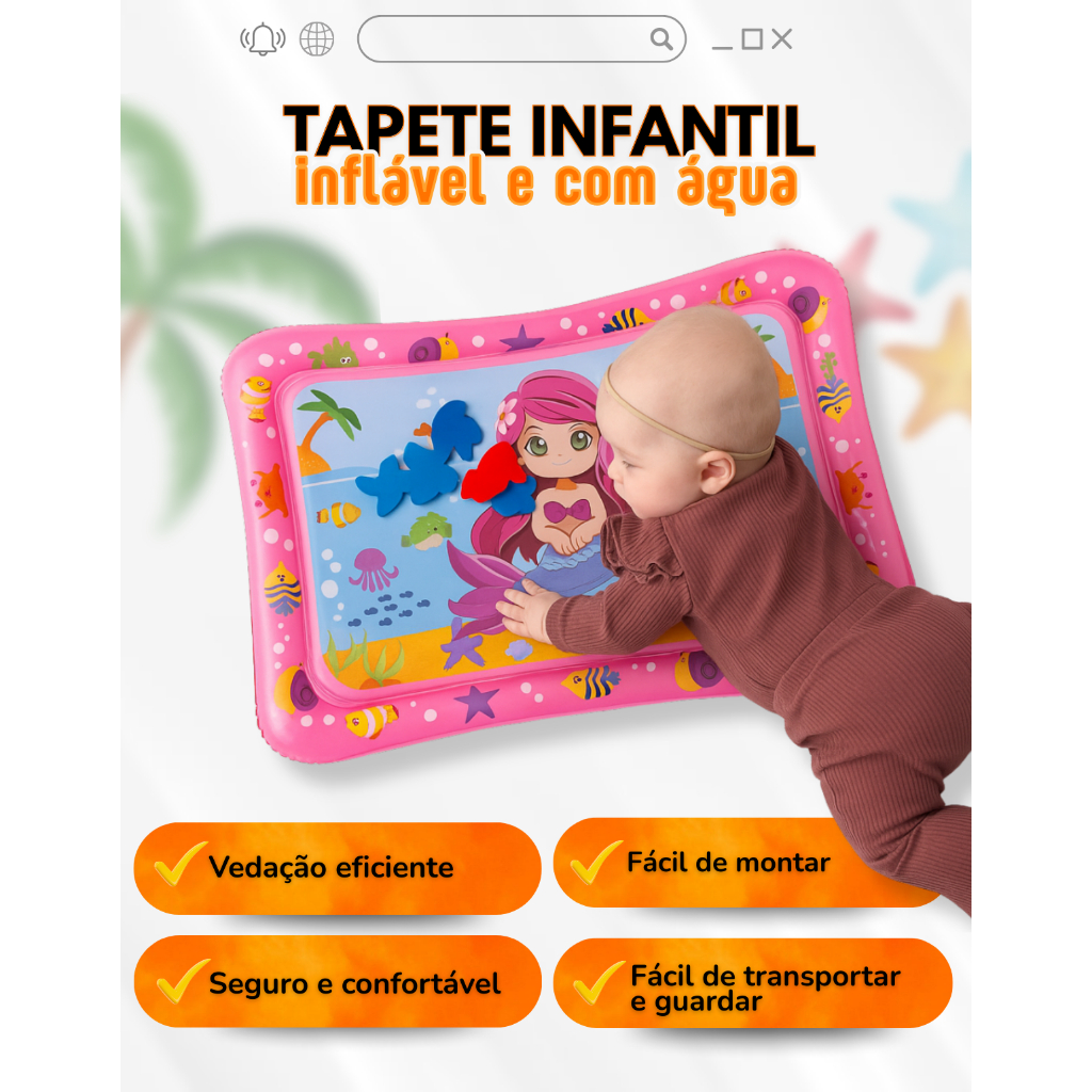 Tapete Infantil Bebê Inflável Água Atividades Sensorial Almofada Menino e Menina