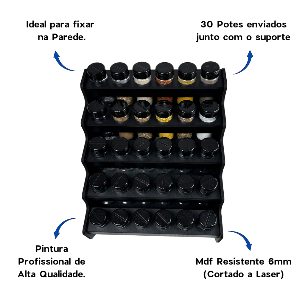 Porta Tempero de Parede 30 Potes com Cartela com 20 Etiquetas