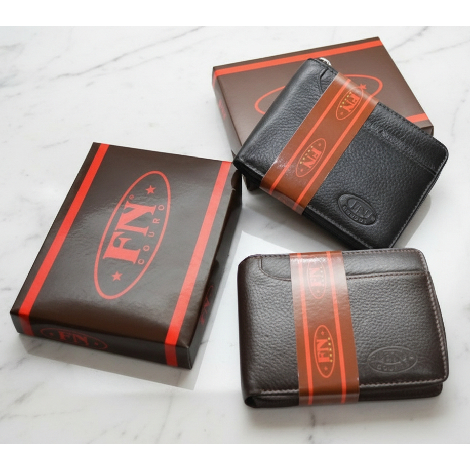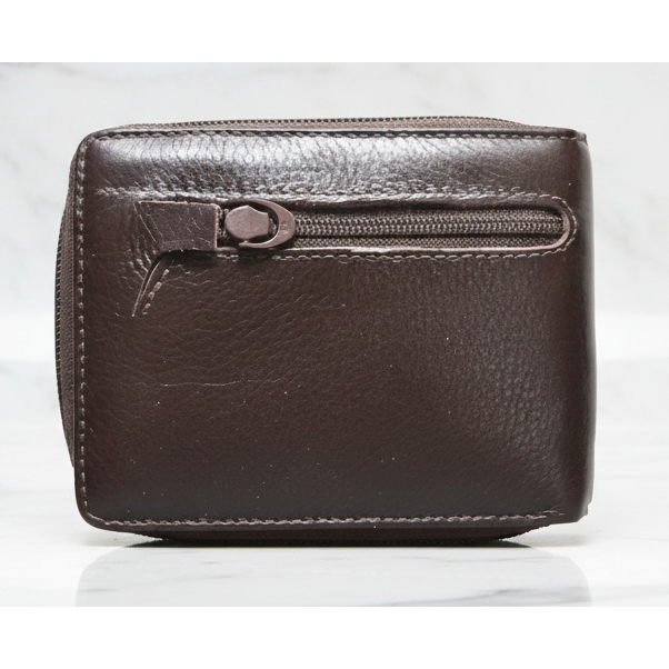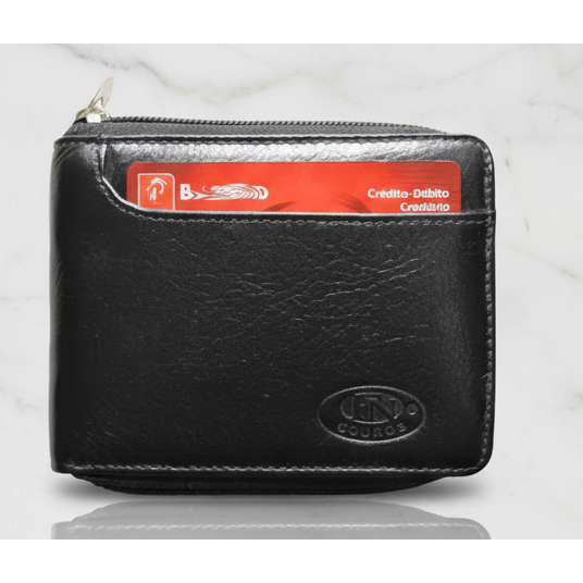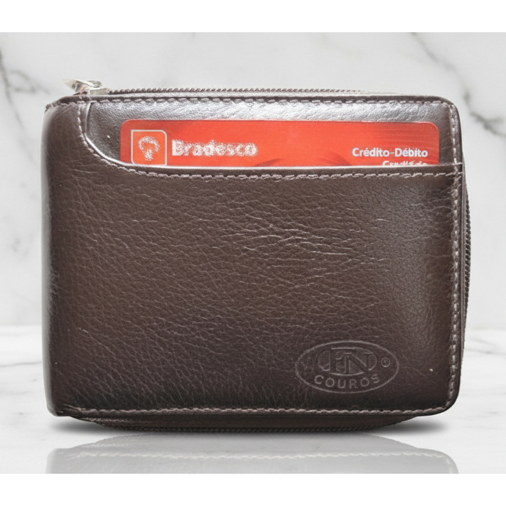 Carteira Zíper Masculina Couro Legitimo Bovino Fecho Zíper Especial Cor Marrom