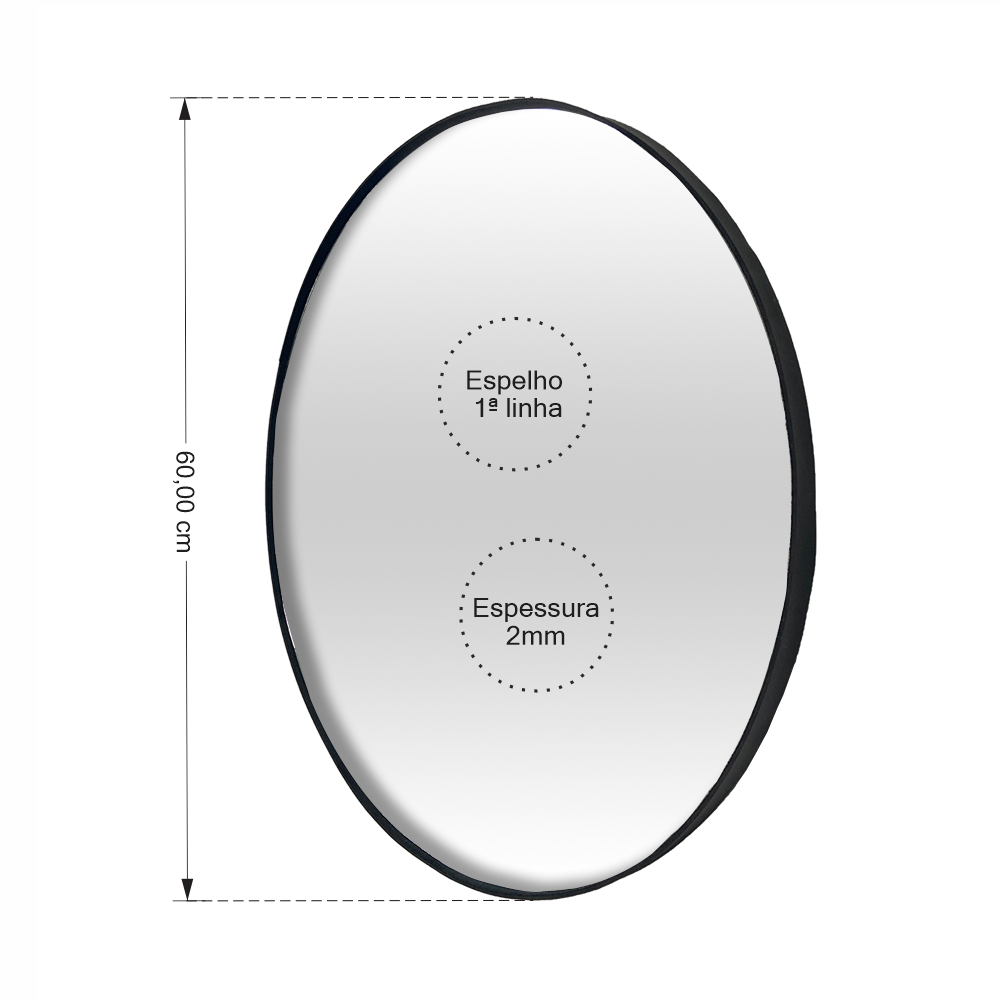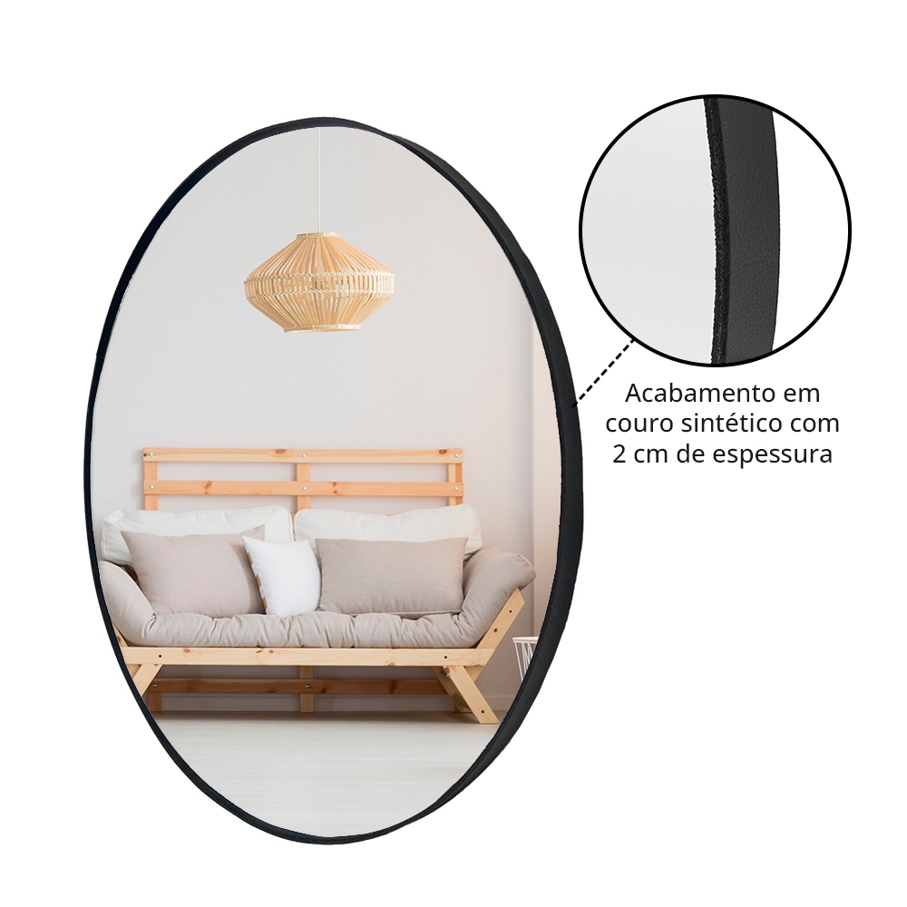 Espelho Redondo 60 cm Couro Suporte Sem Alça Para Banheiro Quarto Sala Decorativo