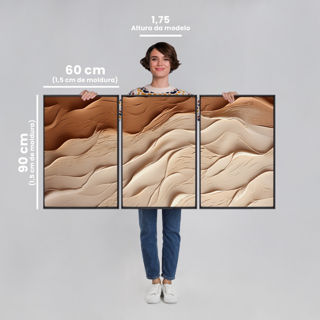 Quadro De Decoração Com 3 Telas Abstrato Para Sala Quarto Escritorio 60x90 Moldura Com E Sem Vidro