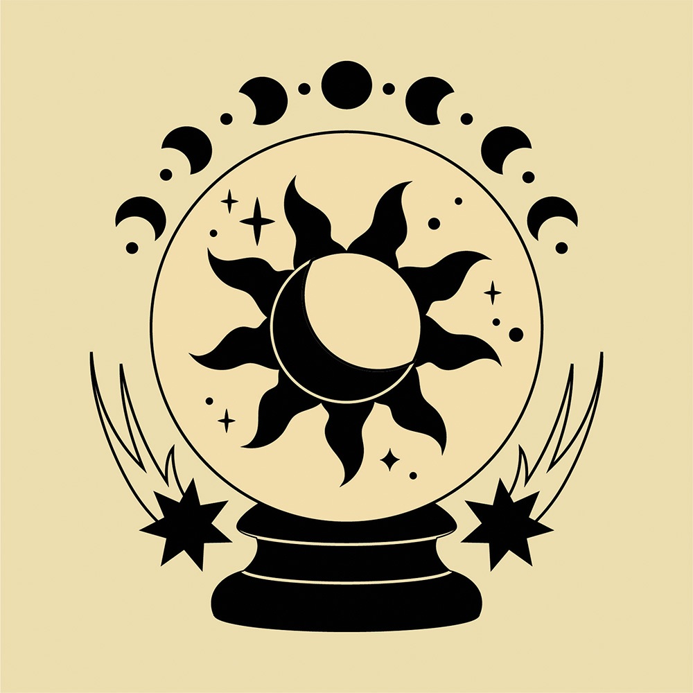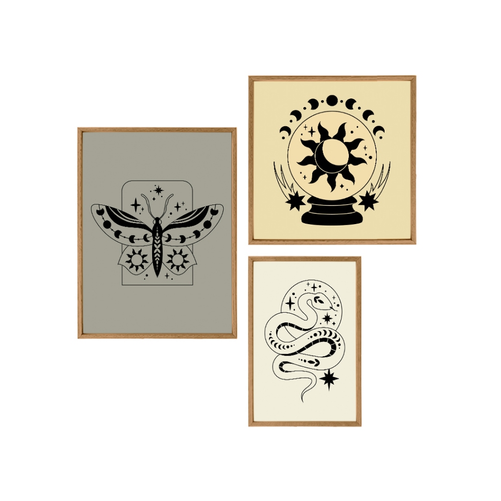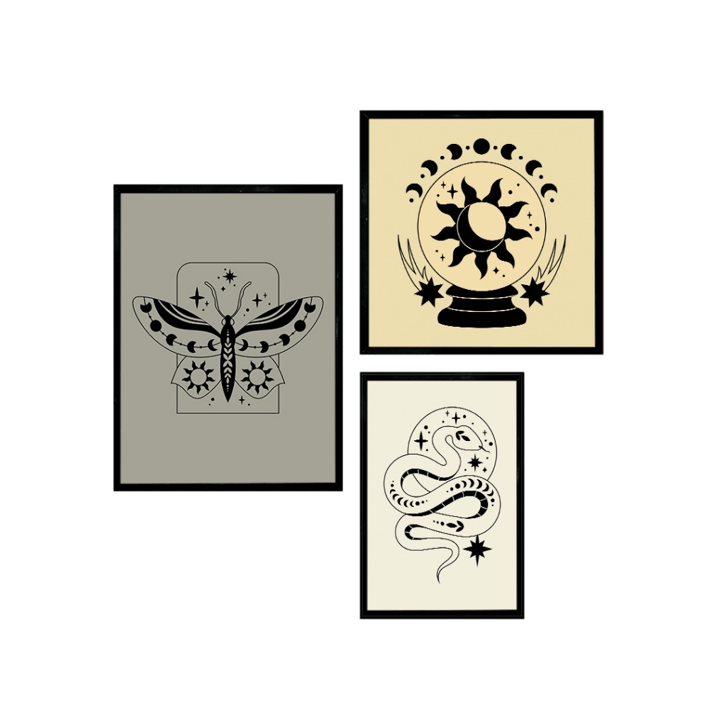 Kit Quadro Decorativo Bola de Cristal Cósmica: União Celestial 3 Peças com Moldura