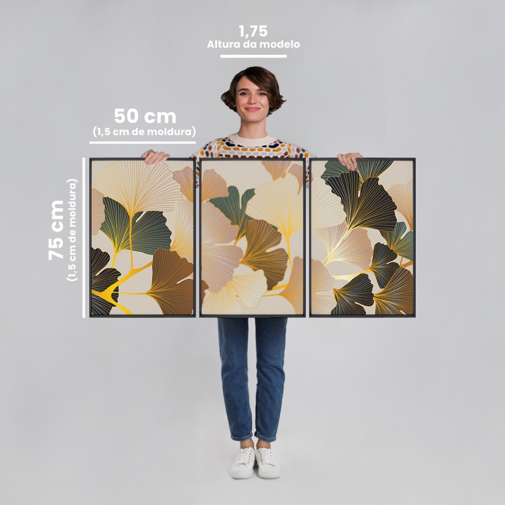 Quadro Decorativo Folhas Vibrantes em Três Atos Abstratos Para Sala Quarto Escritorio