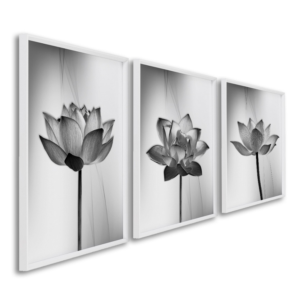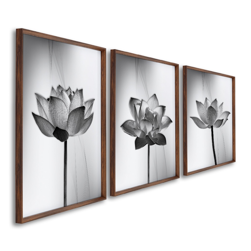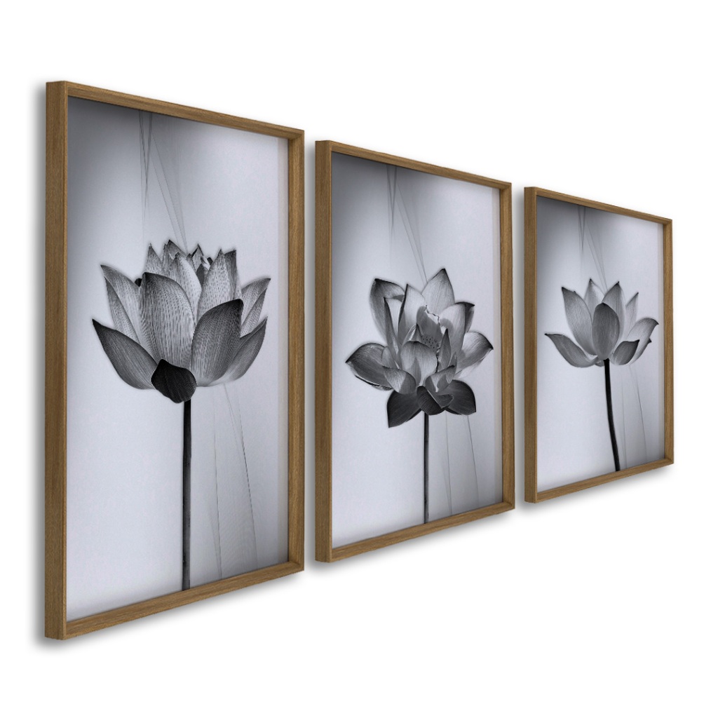 Quadro Decorativo Tríptico Floral Contemporâneo: Equilíbrio e Sofisticação