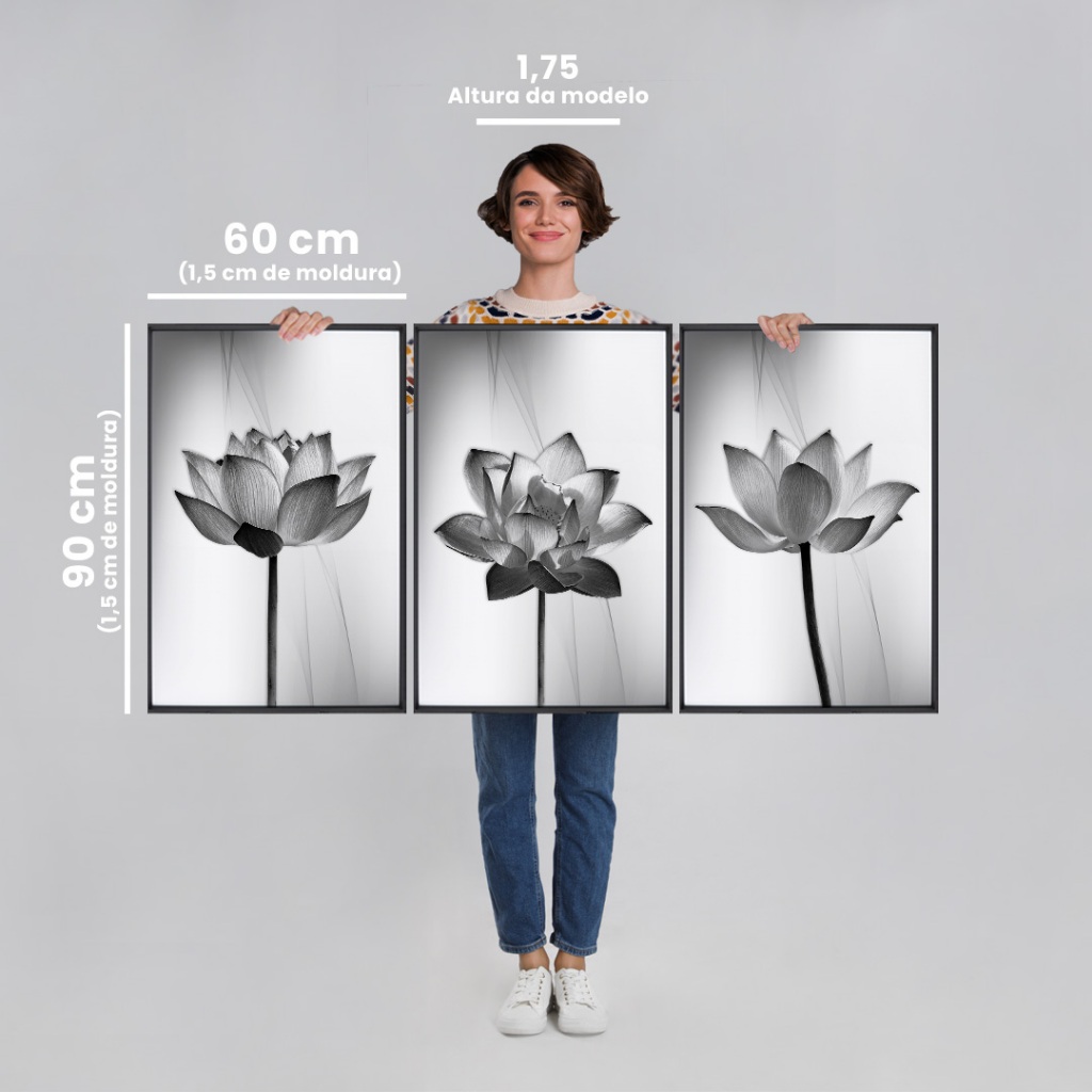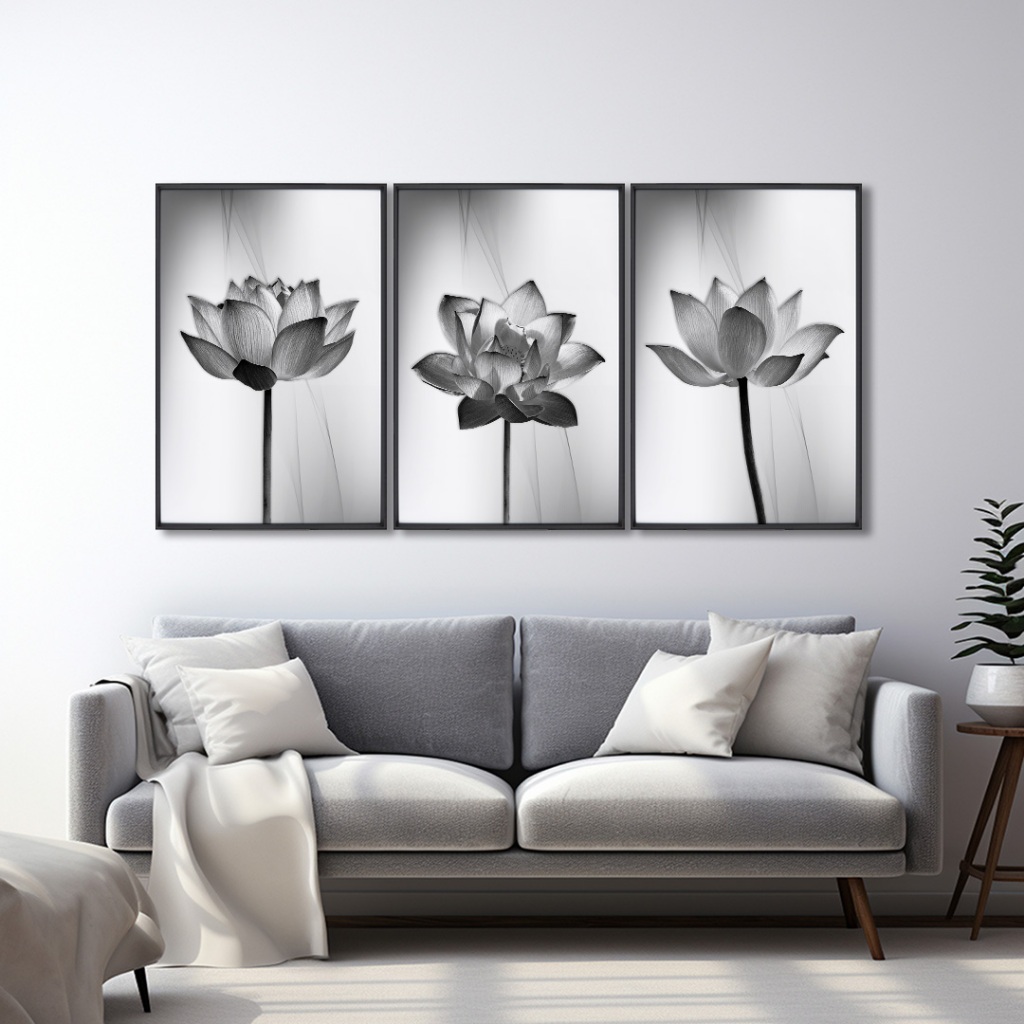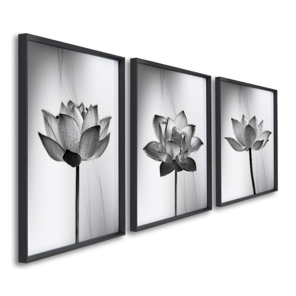 Quadro Decorativo Tríptico Floral Contemporâneo: Equilíbrio e Sofisticação
