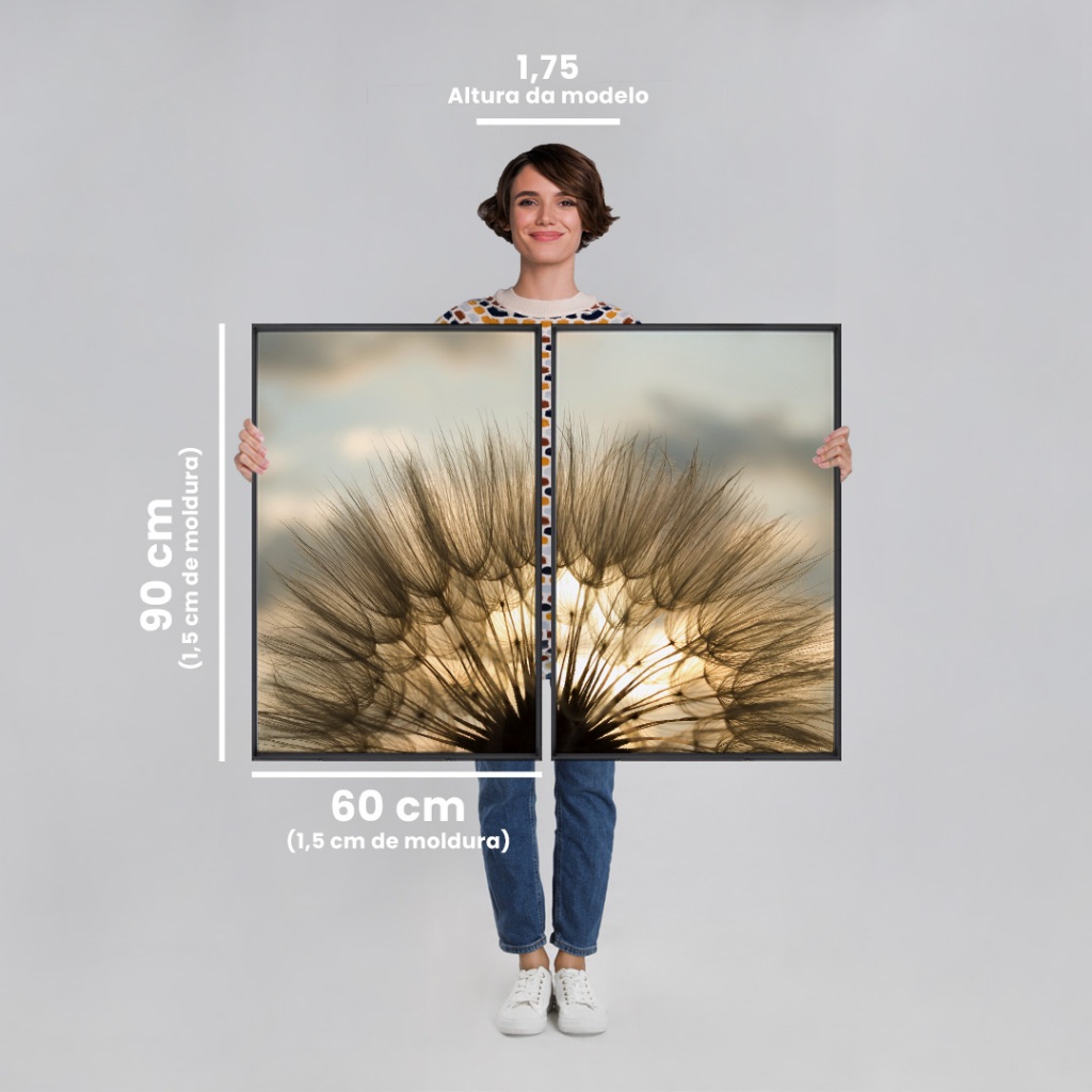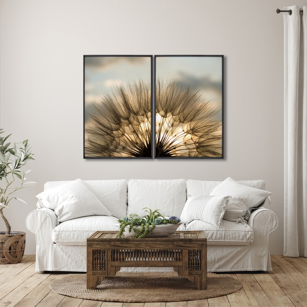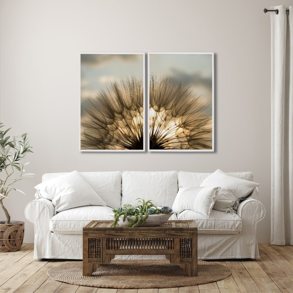 Decoração Sofisticada Quadro de Dente de Leão 2 Telas 60x90 Sala Quarto Escritorio