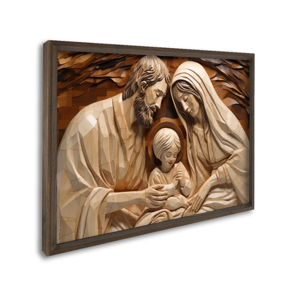Quadro Decorativo A Sagrada Família Maria Jose Jesus Moldura 50x75 e 60x90 cm