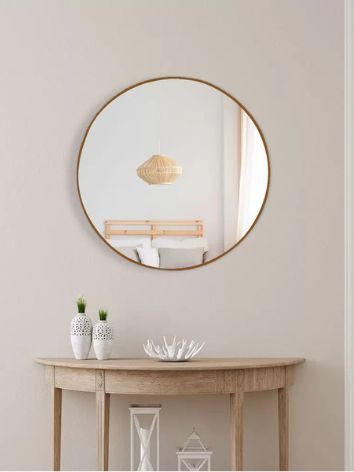 Espelho Redondo 40cm Couro Suporte Sem Alça Para Banheiro Quarto Sala Decorativo Parede
