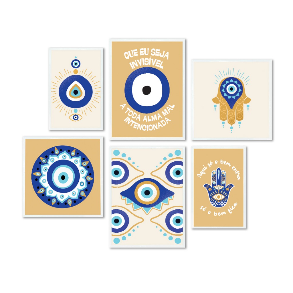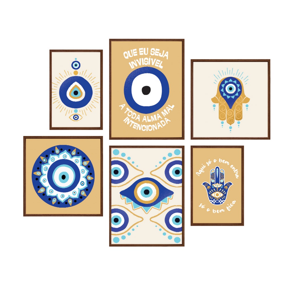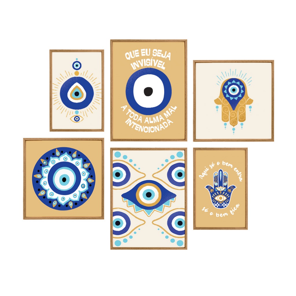 Kit Quadro Decorativo Invisível ao Mal: Proteção Espiritual 6 Peças Quarto Sala Escritorio