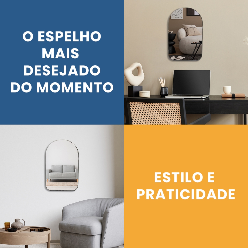 Espelho Orgânico Moderno Modelo Portal Sala Quarto Banheiro Lavabo 60x40cm em Couro