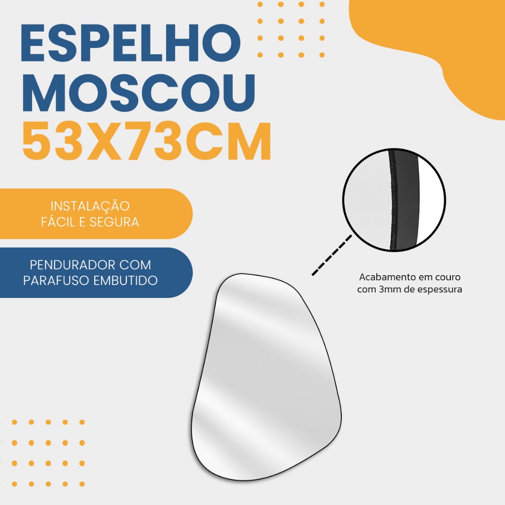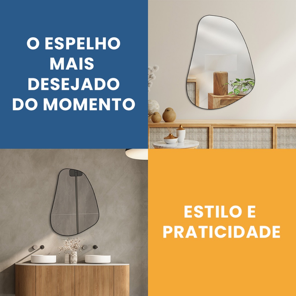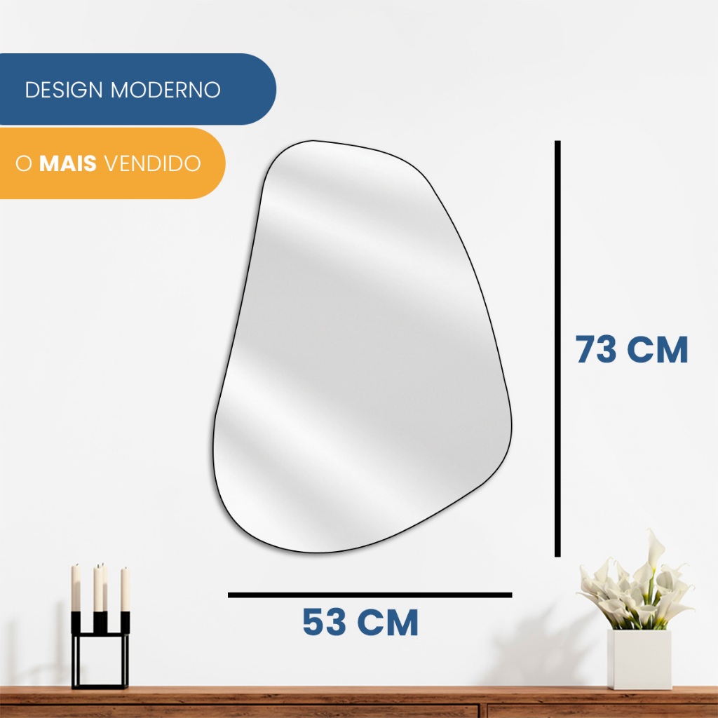 Espelho Organico Moscou 53X73 cm – Design Moderno e Sofisticado salas, quartos, banheiros e halls