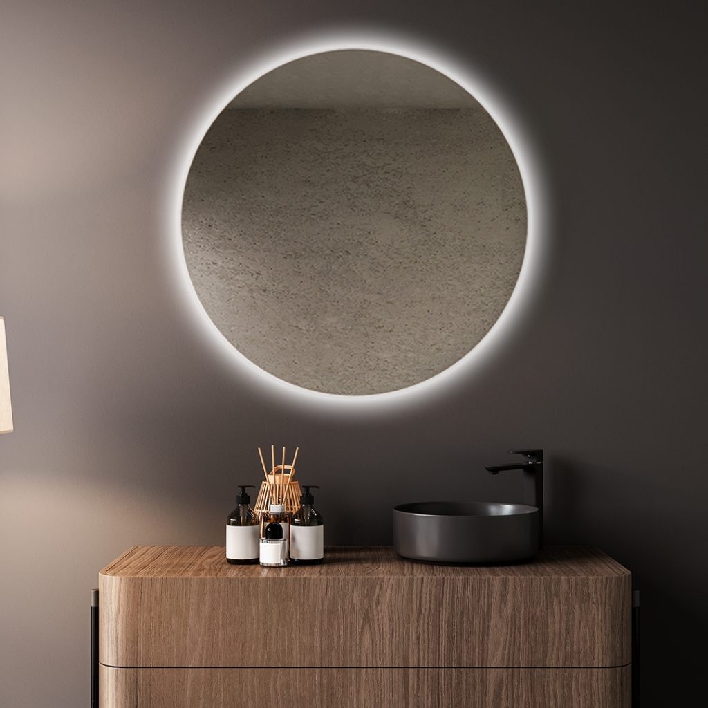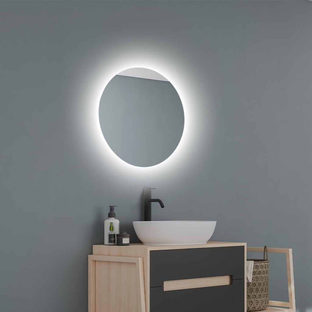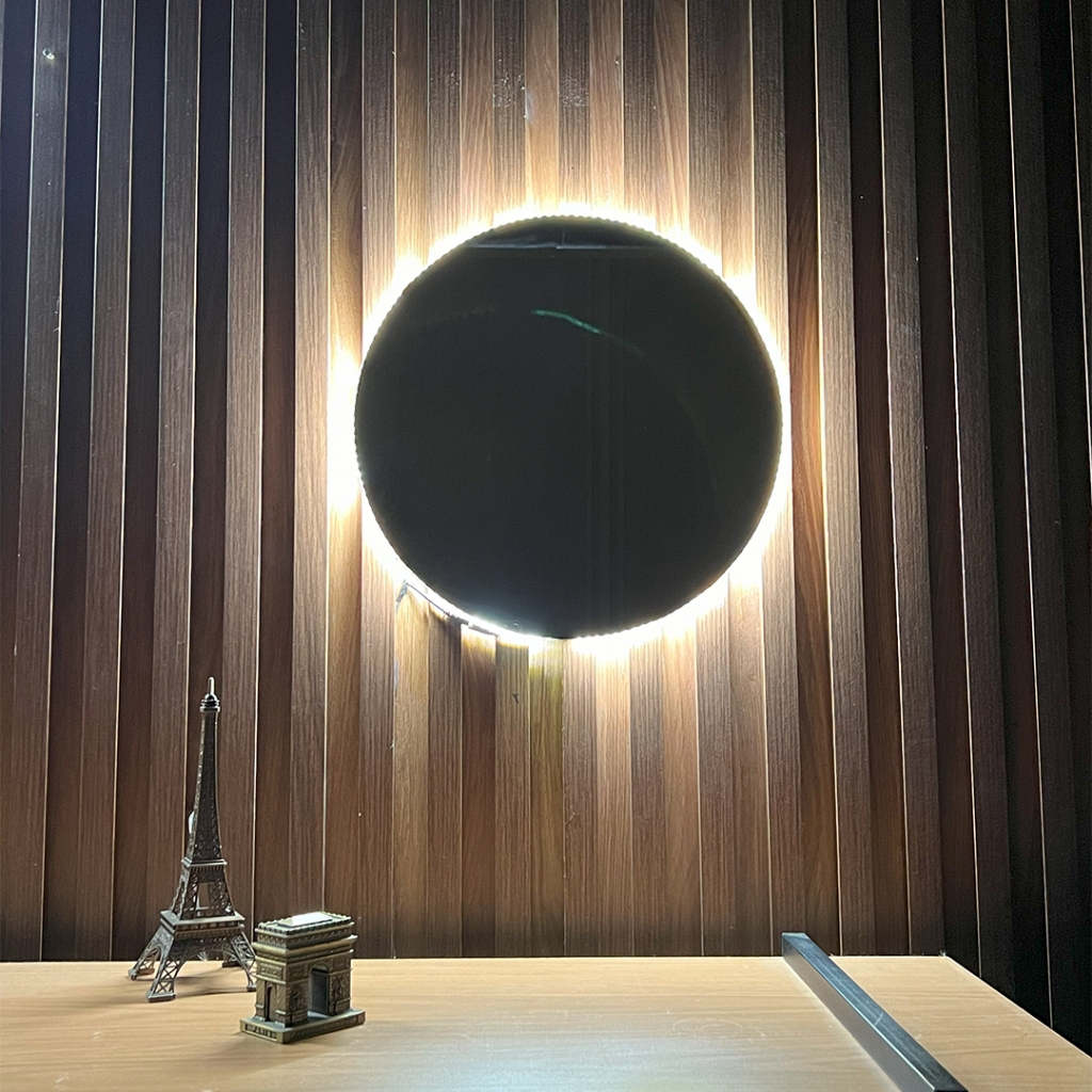 Espelho Redondo Lapidado De Led 40 / 50 / 60 cm Com Fonte Para Sala Banheiro Quarto