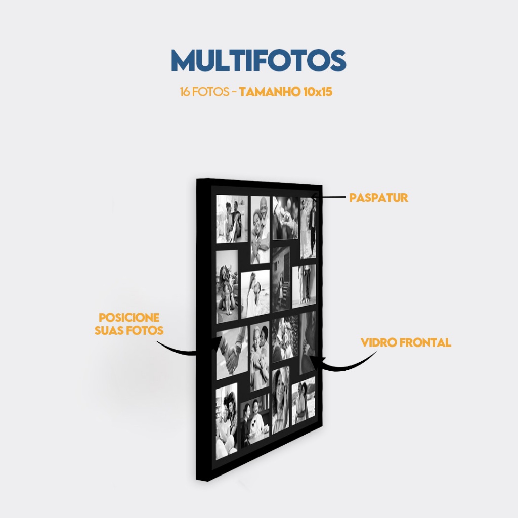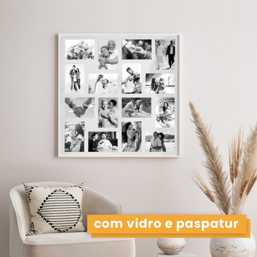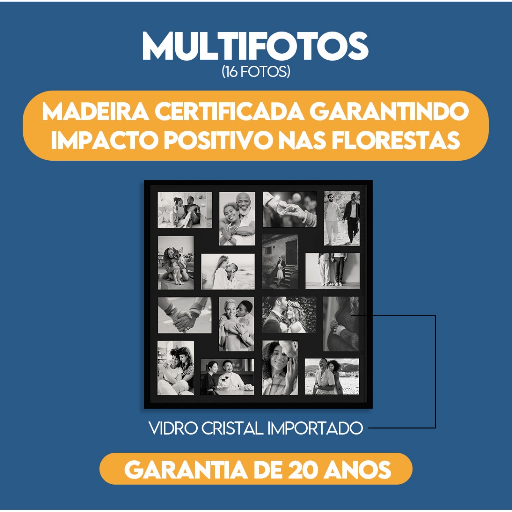 PORTA-RETRATO MULTIFOTOS QUADRADO 16 FOTOS COM VIDRO
