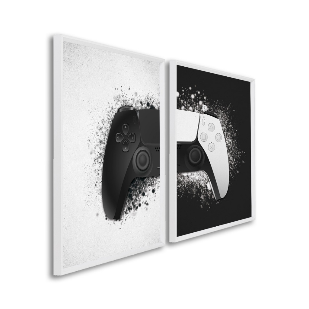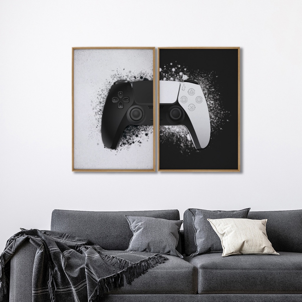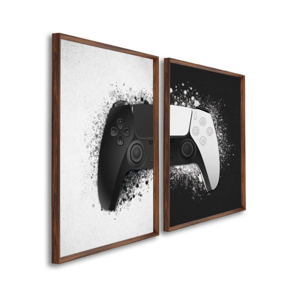 2 Quadros Decorativos Dualidade Gamer com Moldura Sala Quarto Escritorio Com e Sem Vidro