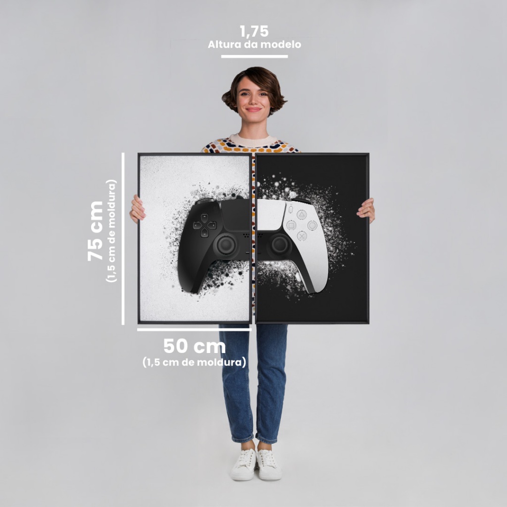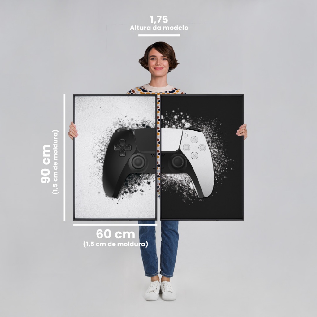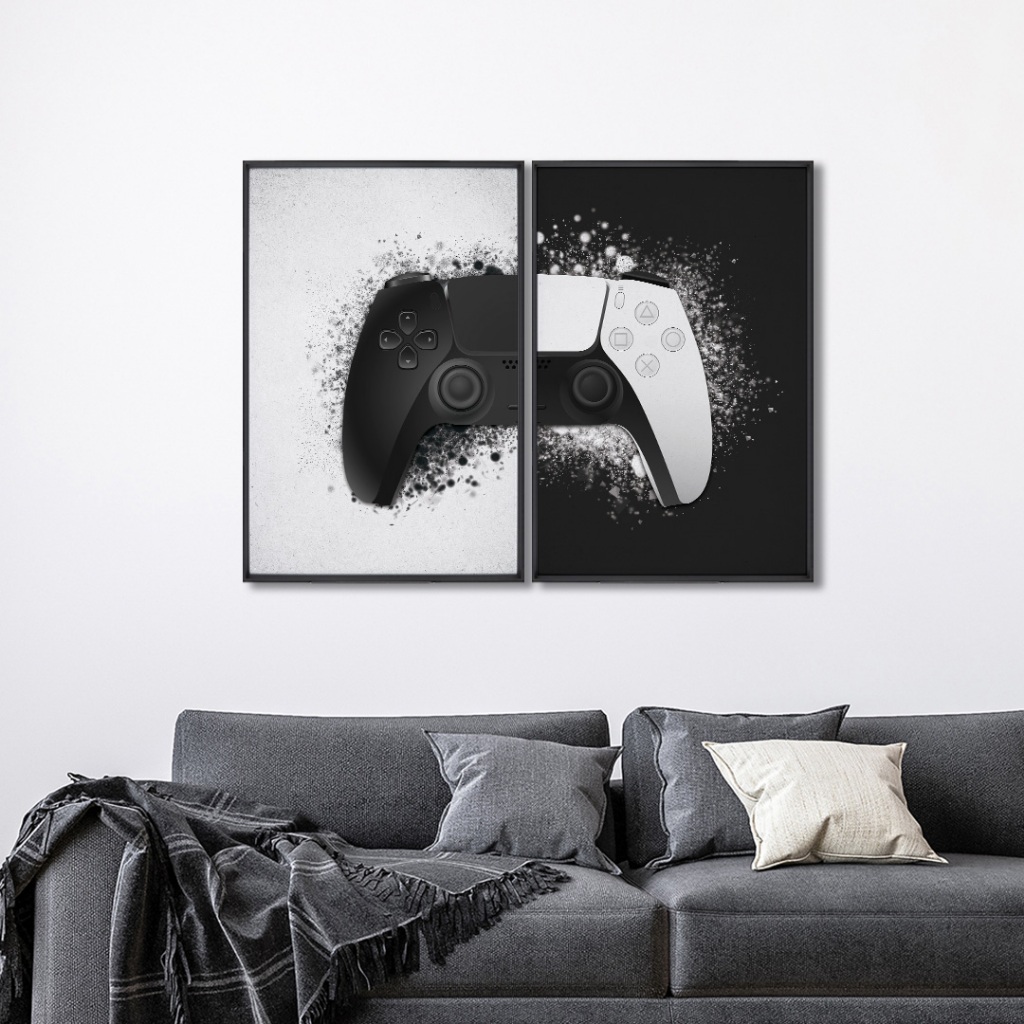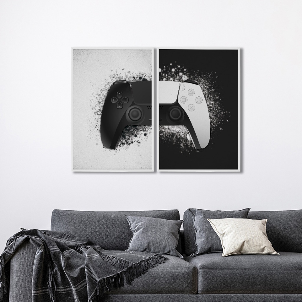 2 Quadros Decorativos Dualidade Gamer com Moldura Sala Quarto Escritorio Com e Sem Vidro