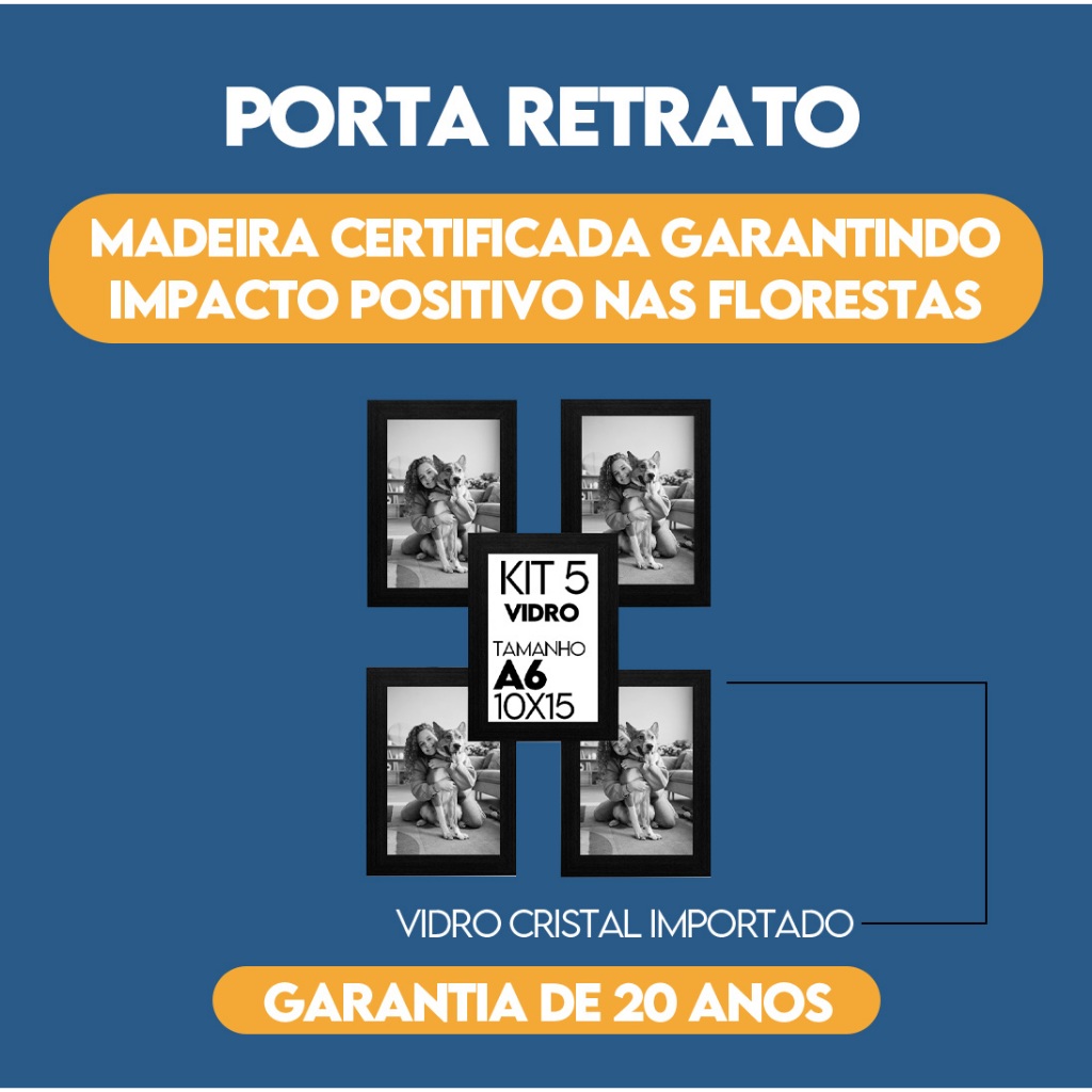 5 Porta Retrato Molduras Para Fotos 10X15 A6 Com Vidro