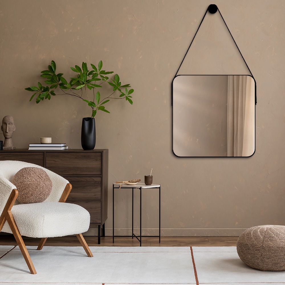Espelho Adnet Quadrado 50x50 cm com Alça - Design Moderno para Salas, Quartos e Escritórios