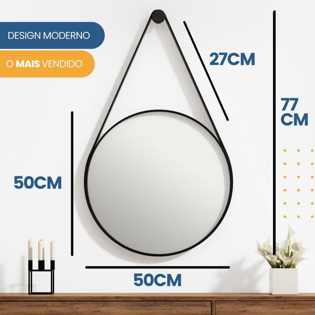 2 Espelho Redondo Decorativo Adnet Supenso de Parede 60cm 50cm 40cm 30cm Com Alça