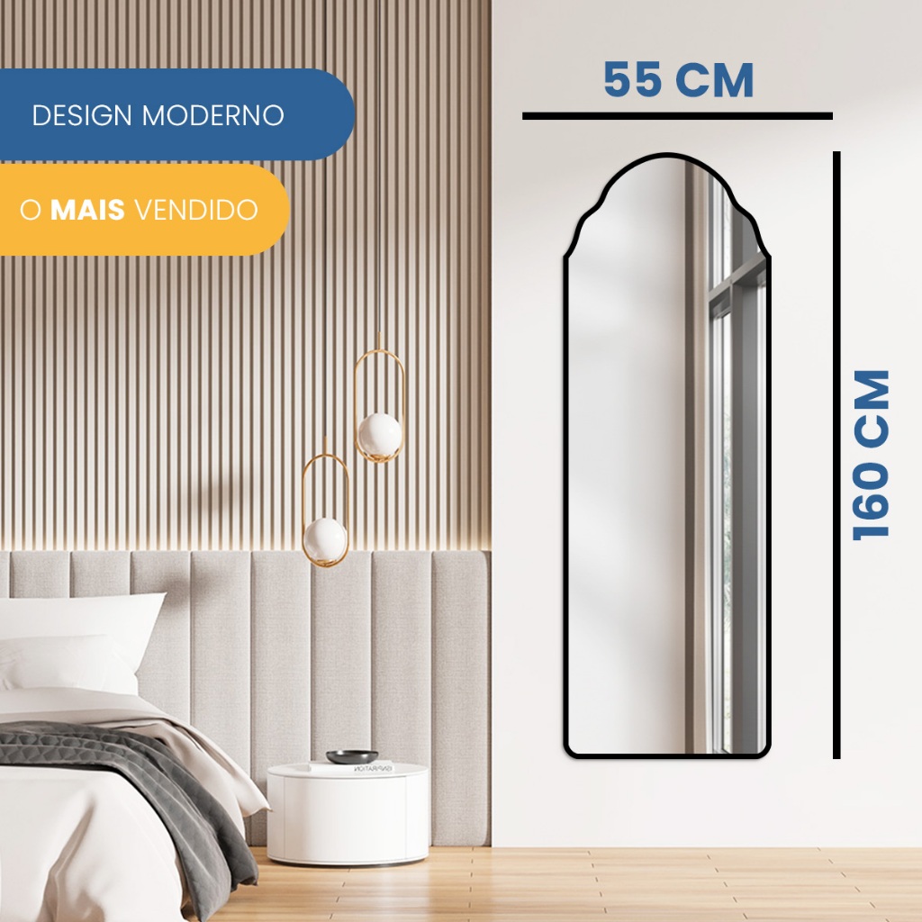 Espelho Grande Taj Mahal 55x160 de Corpo Inteiro para Quarto Sala Hall Closet