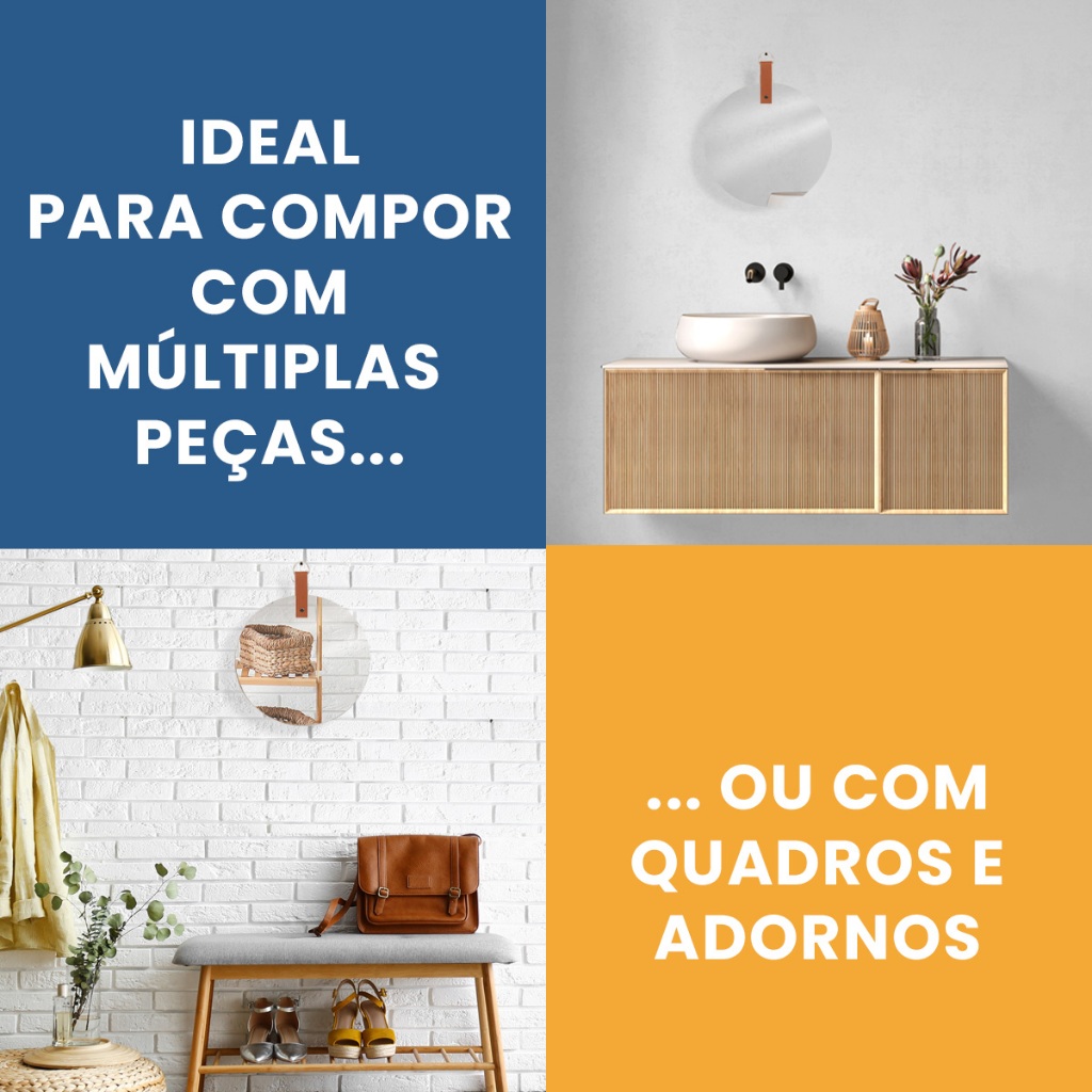 Espelho de Parede 30x30 Circular com Alça Lapidado Ideal para Lavabo, Sala ou Quarto