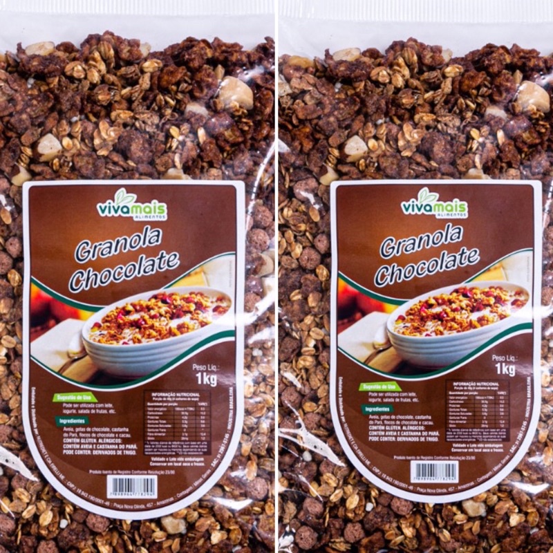 Kit 2 Granolas de Chocolate 1kg /Vivamais Alimentos